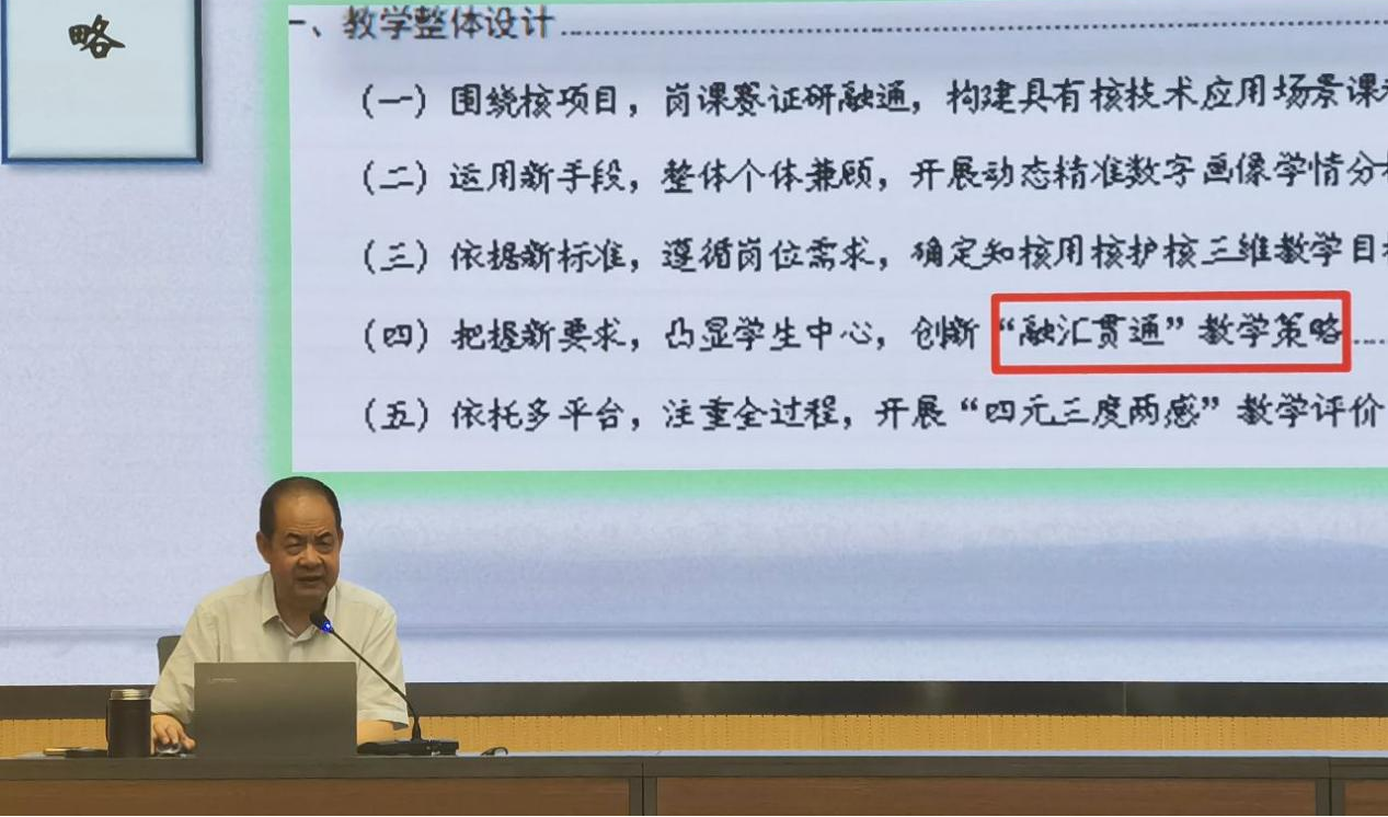 翟存祥以“獲獎作品是如何打磨的——以2023年核技術(shù)應(yīng)用作品為例”為題,對標(biāo)國家教學(xué)能力大賽標(biāo)準(zhǔn),總結(jié)參賽經(jīng)驗,對比賽中教學(xué)團(tuán)隊的組建、參賽項目的選題、人才培養(yǎng)方案的完善、課程標(biāo)準(zhǔn)的制訂、教學(xué)實施方案和教案撰寫、課堂實錄視頻的拍攝以及賽場答辯的準(zhǔn)備做了深入細(xì)致的分析。