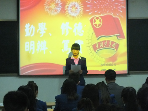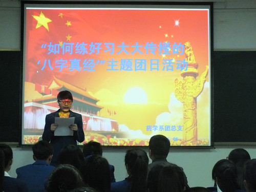 5月6日晚,藥學(xué)系組織團(tuán)學(xué)干部和學(xué)生代表,在博學(xué)樓614室開展了學(xué)習(xí)習(xí)總書記傳授的“八字真經(jīng)”主題團(tuán)日活動(dòng)。