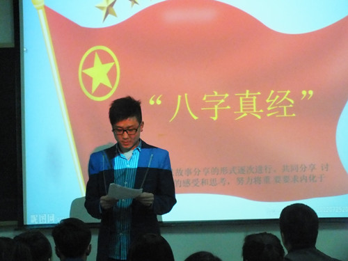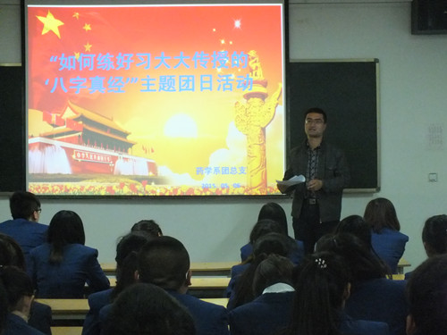 主題團(tuán)會上,系學(xué)生會干部和系團(tuán)干部以及各班學(xué)生代分別就習(xí)總書記的“八字真經(jīng)”的精神通過講故事,說道理等形式進(jìn)行了表達(dá),活動(dòng)氣氛熱烈,大家踴躍發(fā)言,從生活、學(xué)習(xí)各個(gè)方面的小事說起,就“八字真經(jīng)”的內(nèi)涵進(jìn)行了深入的剖析。