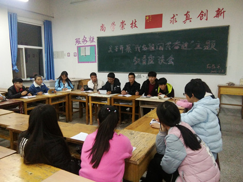 通過組織各班團(tuán)干部開展 “我與祖國共奮進(jìn)”主題座談會(huì),讓團(tuán)干部們對(duì)歷史有了深刻的了解,也讓同學(xué)們?cè)谶@次座談會(huì)中深刻領(lǐng)悟到身為中華兒女要勿忘恥辱,為實(shí)現(xiàn)中華民族偉大復(fù)興的中國夢(mèng)而勤奮學(xué)習(xí)。同時(shí),各班團(tuán)支部以形式多樣的主題團(tuán)會(huì),表達(dá)出為了實(shí)現(xiàn)“中國夢(mèng)”,讓屈辱的歷史不再重演,將要萬分珍惜今天這來之不易的和平生活,努力學(xué)習(xí),不斷進(jìn)取。