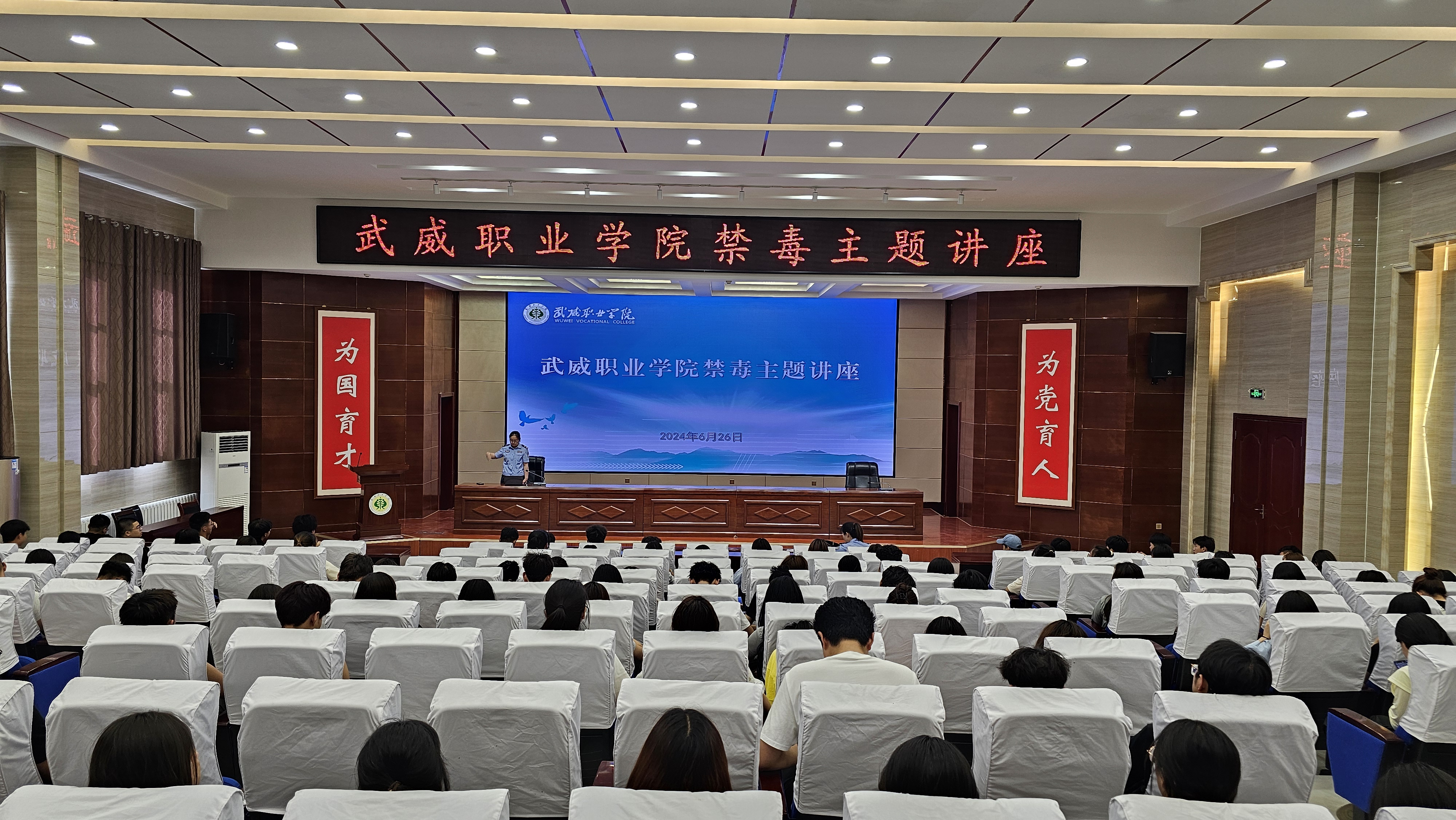 6月26日下午,學(xué)校邀請(qǐng)涼州區(qū)公安局西關(guān)派出所阮慧萍警官以《防范藥品濫用,護(hù)航無毒青春》為主題作了講座,各二級(jí)學(xué)院輔導(dǎo)員及學(xué)生代表200余人聆聽講座。講座由安全保衛(wèi)處副處長(zhǎng)康興奎主持。