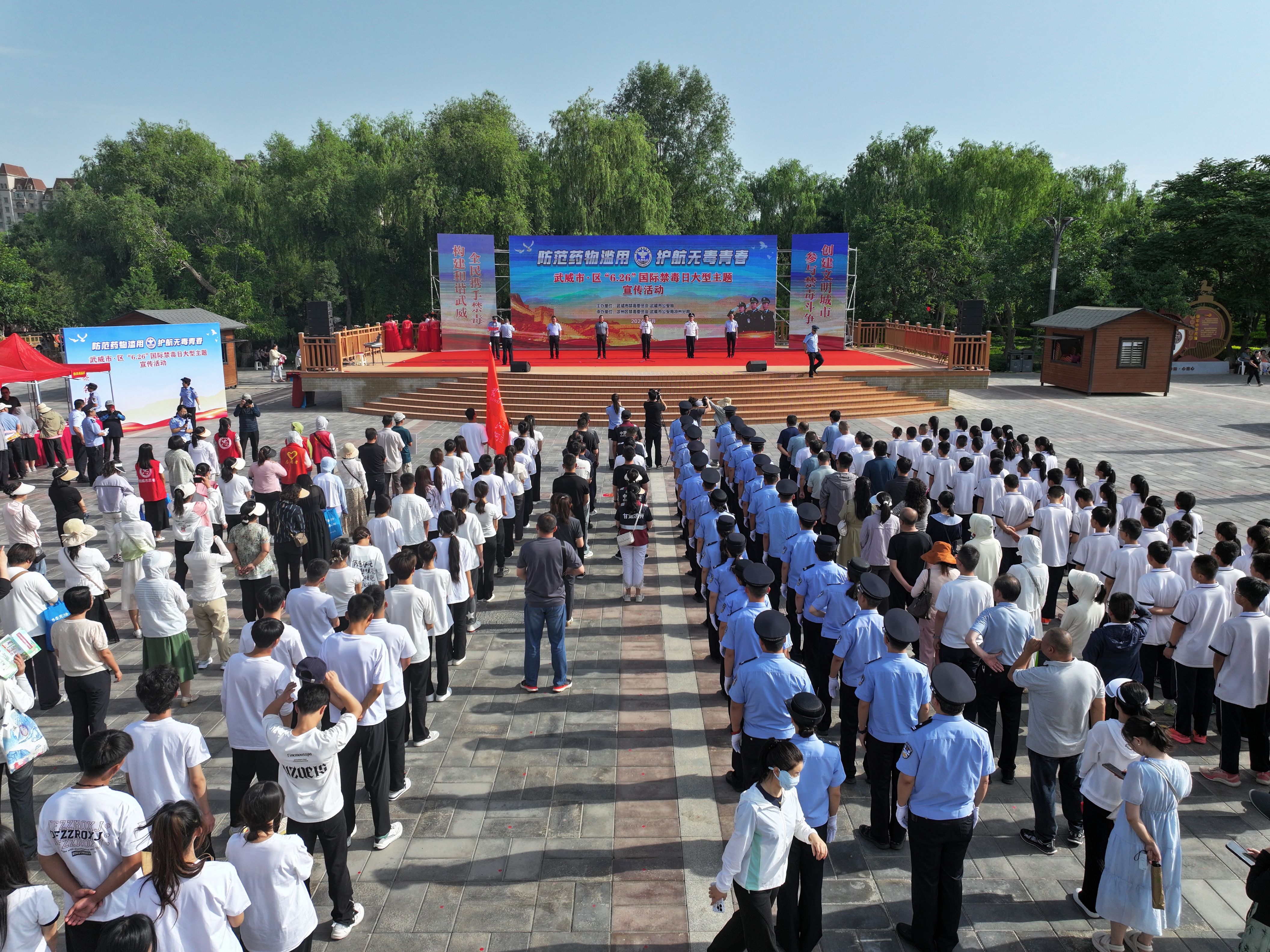 6月26日上午,學(xué)校組織50名師生參加了武威市禁毒委在涼州區(qū)植物園舉行的“6.26”國(guó)際禁毒日暨“防范藥物濫用 護(hù)航無毒青春”宣講活動(dòng)?;顒?dòng)中,我校學(xué)生代表宣讀了《青少年防范藥物濫用倡議書》,師生在簽名墻簽名。