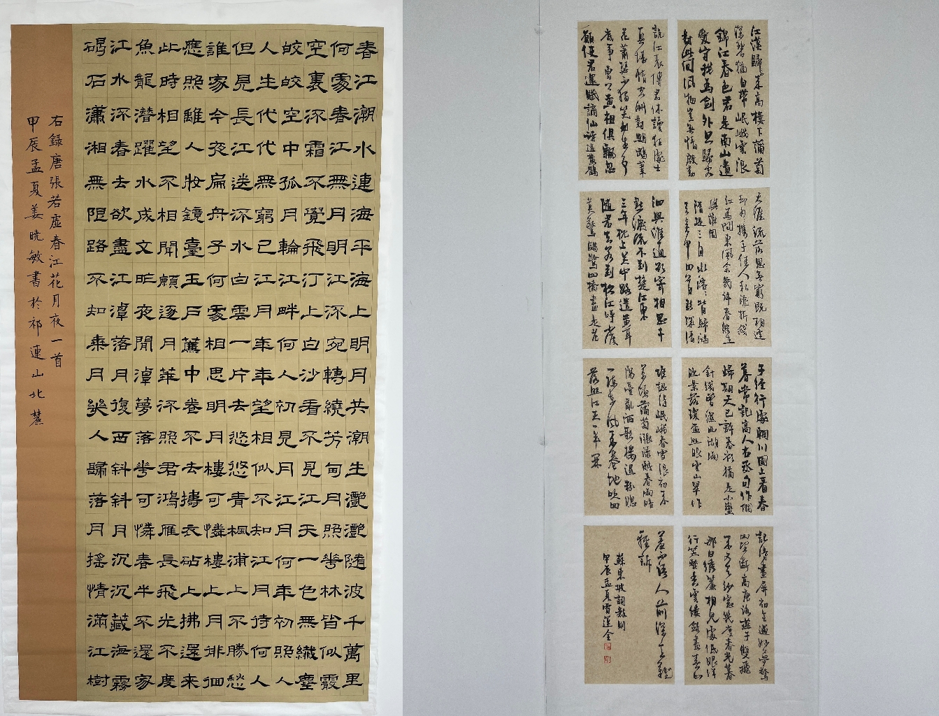 經(jīng)學(xué)校層層選拔,共推送11件作品參加省級(jí)比賽。學(xué)生誦讀作品《在歡呼的人群中》在“誦讀中國(guó)”經(jīng)典誦讀大賽省賽中獲得一等獎(jiǎng),《前赤壁賦》《臨安遺恨》獲得二等獎(jiǎng);教師誦讀作品《春江花月夜》獲優(yōu)秀獎(jiǎng)。軟筆書法作品《春江花月夜》和《踔歷奮楫聯(lián)》在“筆墨中國(guó)”漢字書寫大賽省賽中分別獲大學(xué)生組二等獎(jiǎng)和三等獎(jiǎng);教師軟筆書法作品《蘇軾詞數(shù)則》獲三等獎(jiǎng)。誦讀作品《在歡呼的人群中》《前赤壁賦》《臨安遺恨》均入圍國(guó)賽。