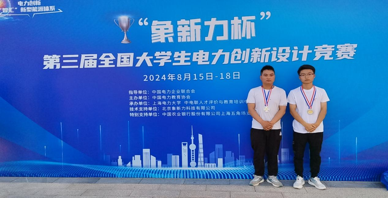 8月15-18日,“象新力杯”第三屆全國(guó)大學(xué)生電力創(chuàng)新設(shè)計(jì)競(jìng)賽總決賽在上海電力大學(xué)(臨港校區(qū))圓滿(mǎn)舉行。來(lái)自全國(guó)114所高校的289支團(tuán)隊(duì)共計(jì)1500余人共同參與,經(jīng)過(guò)線上線下,匯聚智慧、碰撞創(chuàng)意、交流成果、比拼才能,我校工程技術(shù)學(xué)院參賽的2名同學(xué)獲決賽二等獎(jiǎng)。
