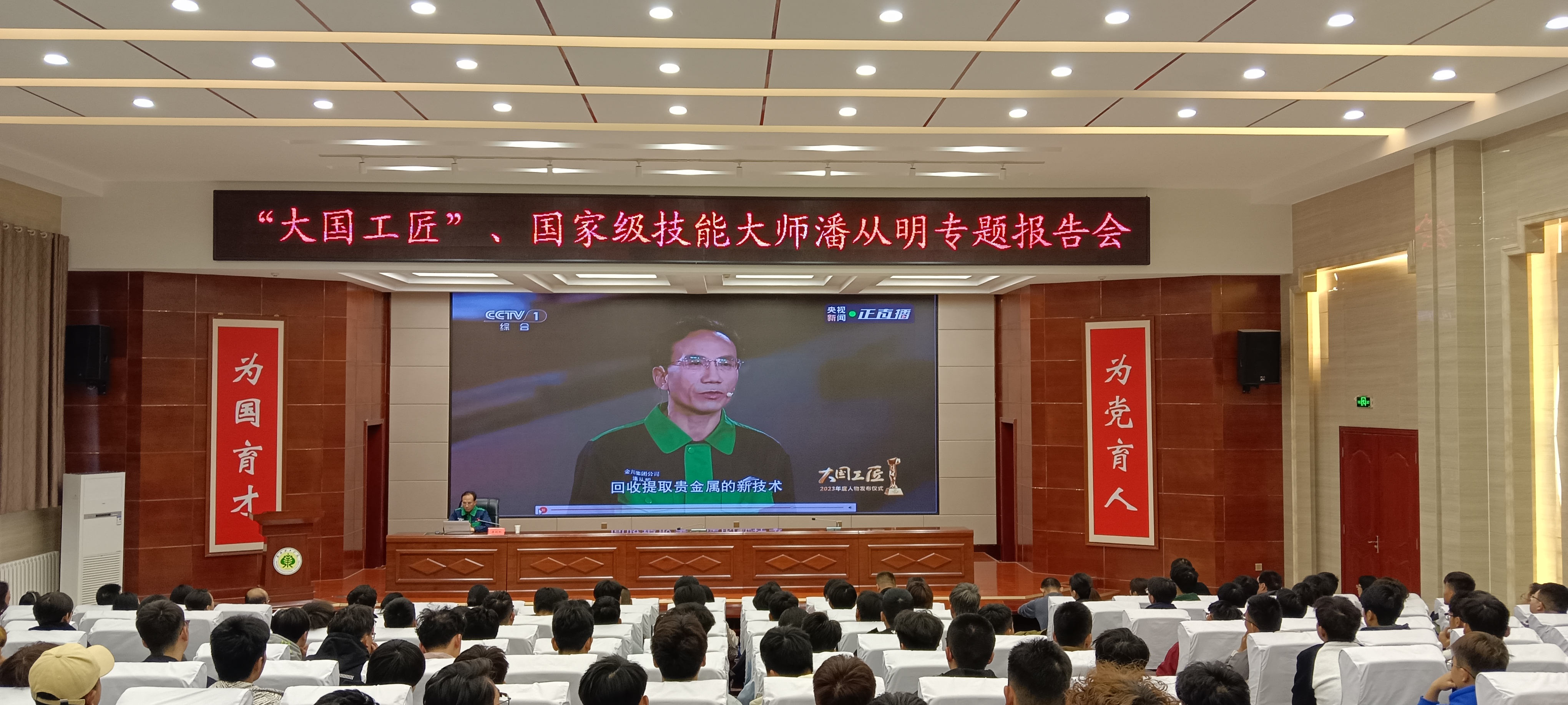 潘從明以“弘揚工匠、勞模精神 勇?lián)聲r代使命”為題,從創(chuàng)新的使命與初心、創(chuàng)新的方法、新員工塑培等方面結(jié)合自身工作經(jīng)歷,分享了從金川公司技校畢業(yè)后,通過自己的不懈努力,完成了從一名學(xué)徒到普通工人、高級技師到國家級技能大師,再到大國工匠的跨越。