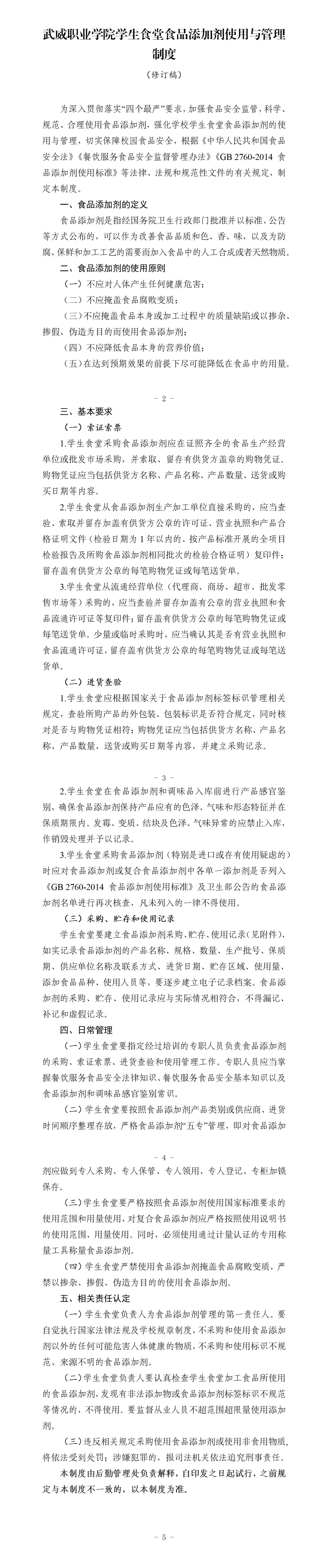 武威職業(yè)學(xué)院學(xué)生食堂食品添加劑使用與管理制度