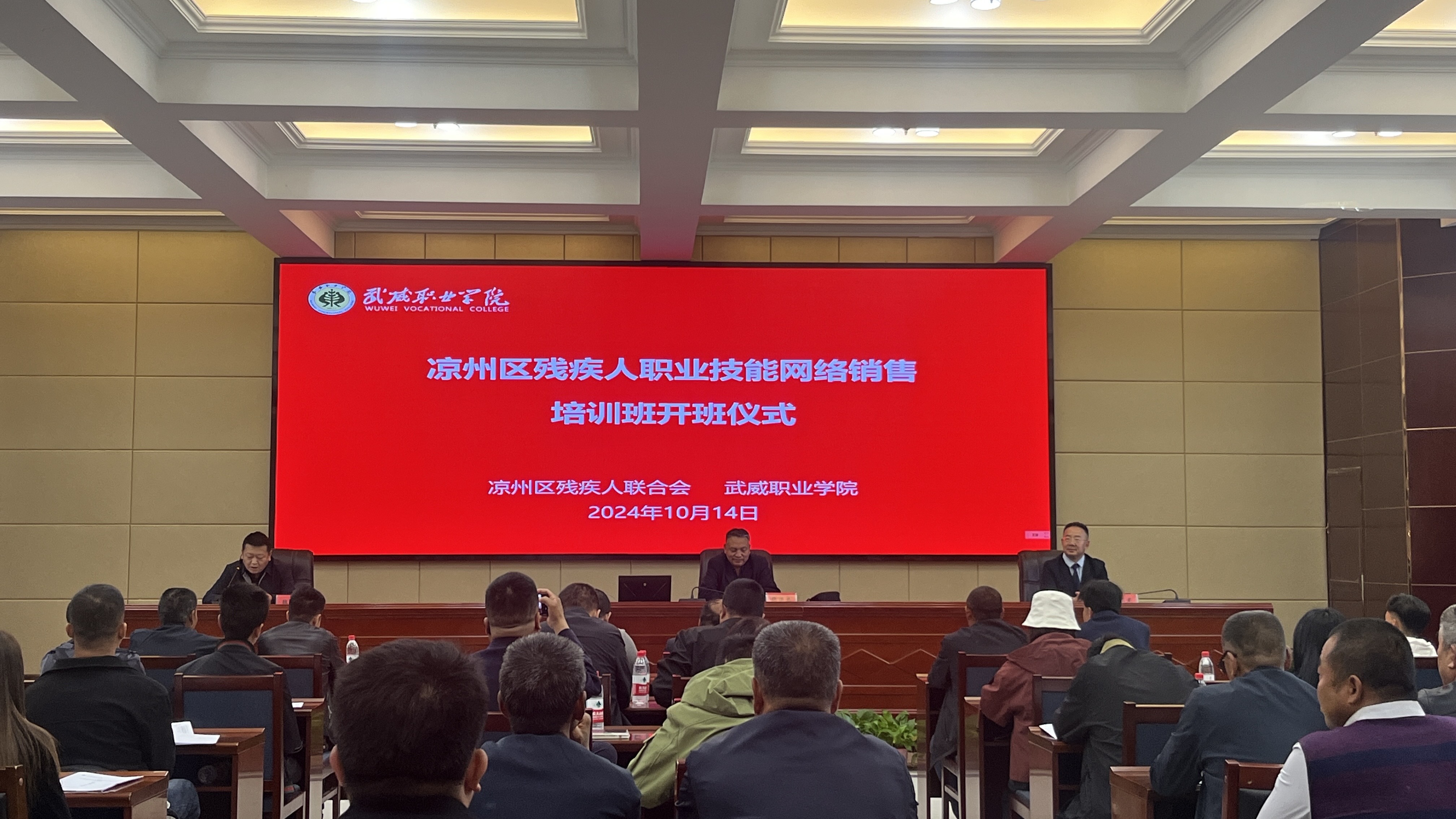 10月14日下午,由涼州區(qū)殘疾人聯(lián)合會(huì)主辦,我校承辦的涼州區(qū)殘疾人職業(yè)技能網(wǎng)絡(luò)銷(xiāo)售培訓(xùn)班順利開(kāi)班,來(lái)自涼州區(qū)的70名殘疾人學(xué)員參加本次培訓(xùn)學(xué)習(xí)。涼州區(qū)殘聯(lián)主任張德龍、學(xué)校教學(xué)督導(dǎo)室金玉龍老師出席了開(kāi)班儀式。藥學(xué)院魏曙光老師主持了開(kāi)班儀式。