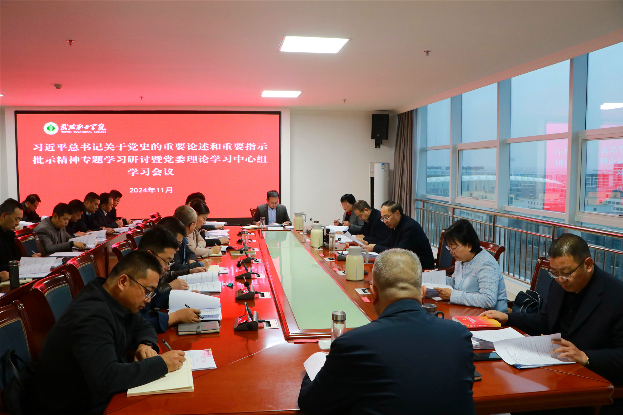 11月15日上午,學(xué)校召開習(xí)近平總書記關(guān)于黨史的重要論述和重要指示批示精神專題學(xué)習(xí)研討暨黨委理論學(xué)習(xí)中心組學(xué)習(xí)會議。學(xué)校黨委領(lǐng)導(dǎo)班子成員,各部門、二級學(xué)院主要負(fù)責(zé)人,各黨總支與直屬黨支部書記參加學(xué)習(xí)會議。黨委書記王宏主持會議并講話。