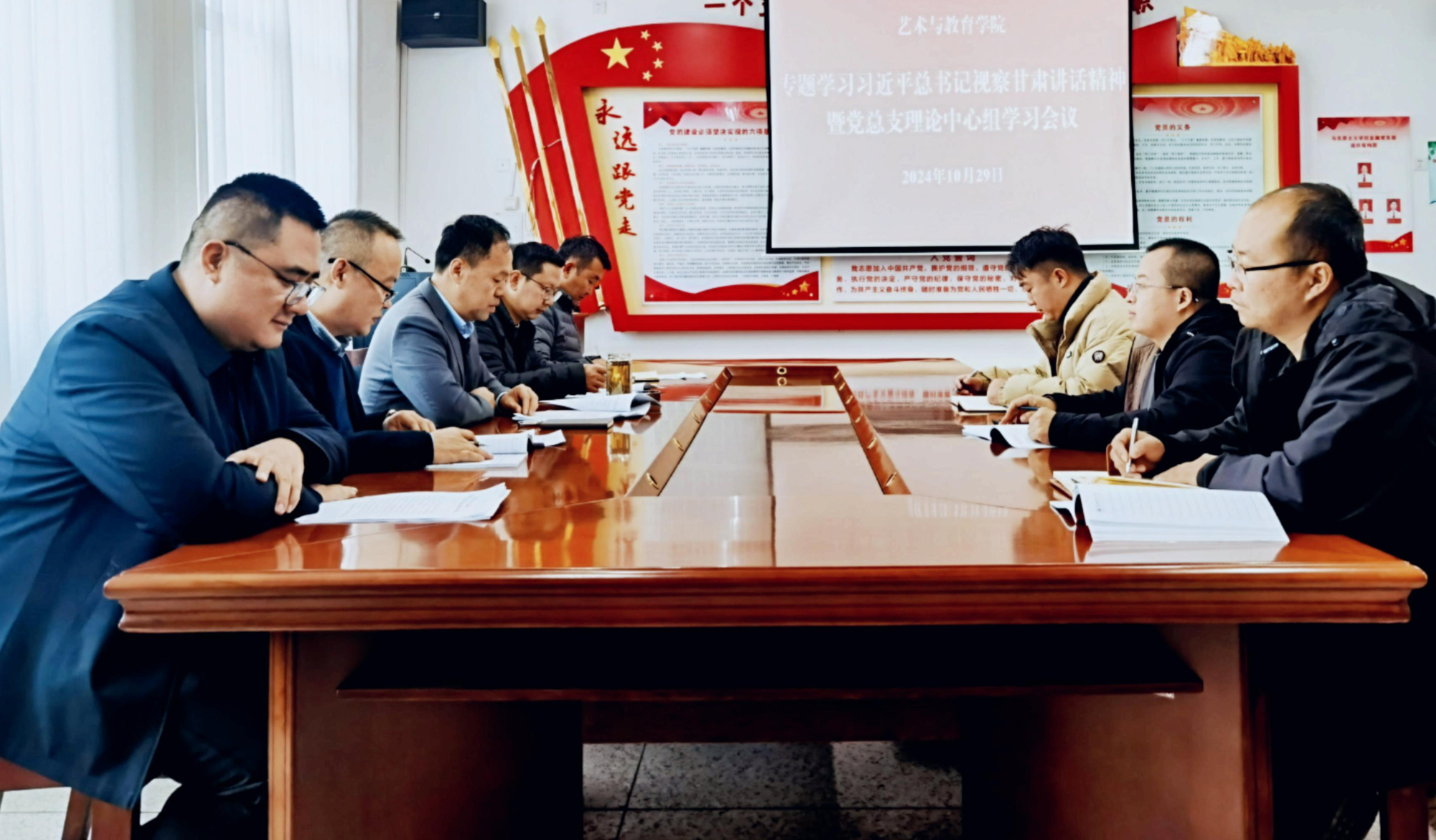 ? ?10月29日下午,學(xué)院召開(kāi)專題學(xué)習(xí)習(xí)近平總書(shū)記在甘肅考察時(shí)的重要講話和指示精神暨黨總支理論中心組學(xué)習(xí)會(huì)議,黨總支委員及全體中心組成員參加會(huì)議。