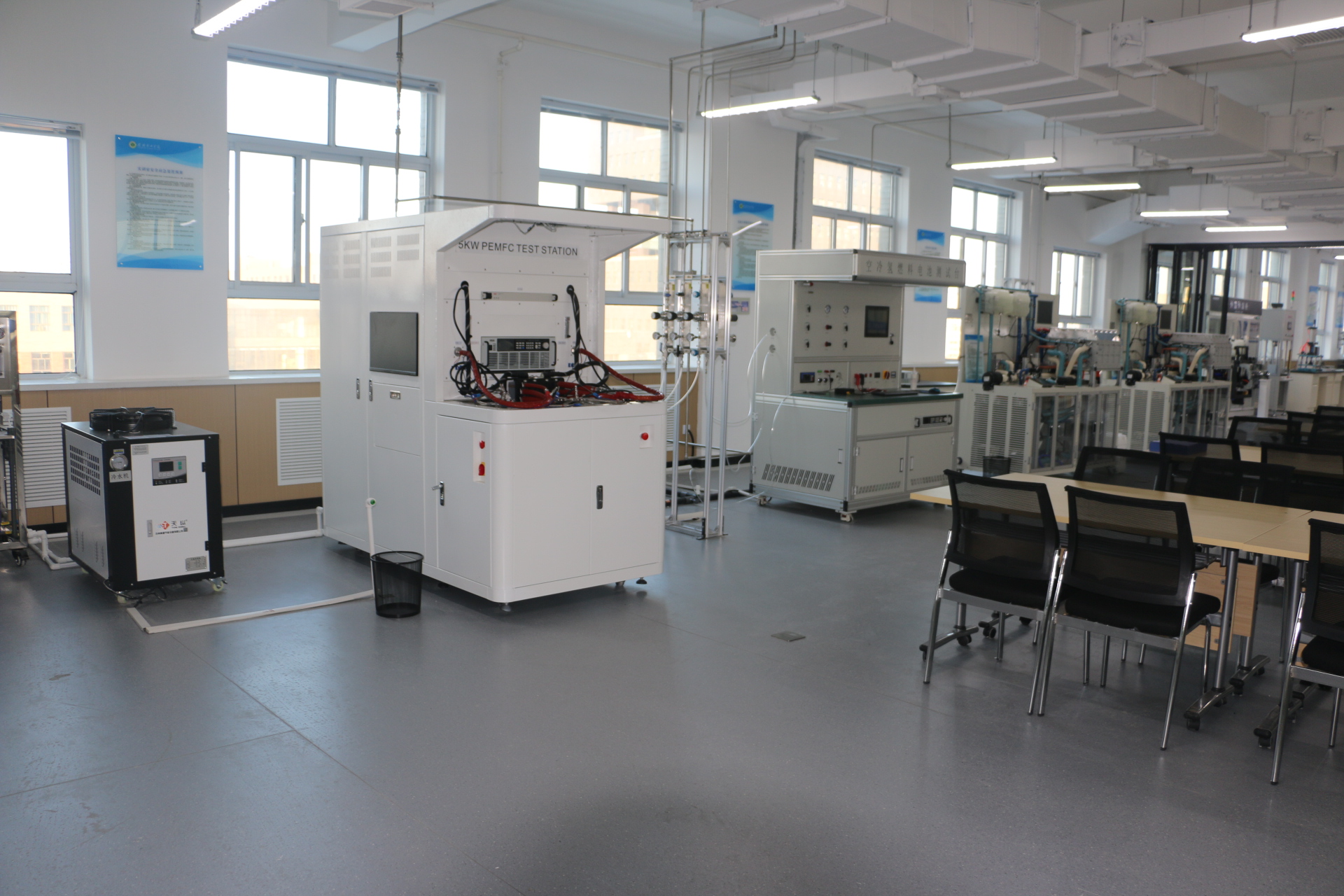 本實(shí)訓(xùn)室主要服務(wù)的課程有:燃料電池技術(shù)、氫能裝備檢測與維護(hù)、氫能汽車動力系統(tǒng)運(yùn)行。主要設(shè)備有:裁切機(jī)、噴涂機(jī)、點(diǎn)膠機(jī)、壓機(jī)、恒溫恒濕箱。