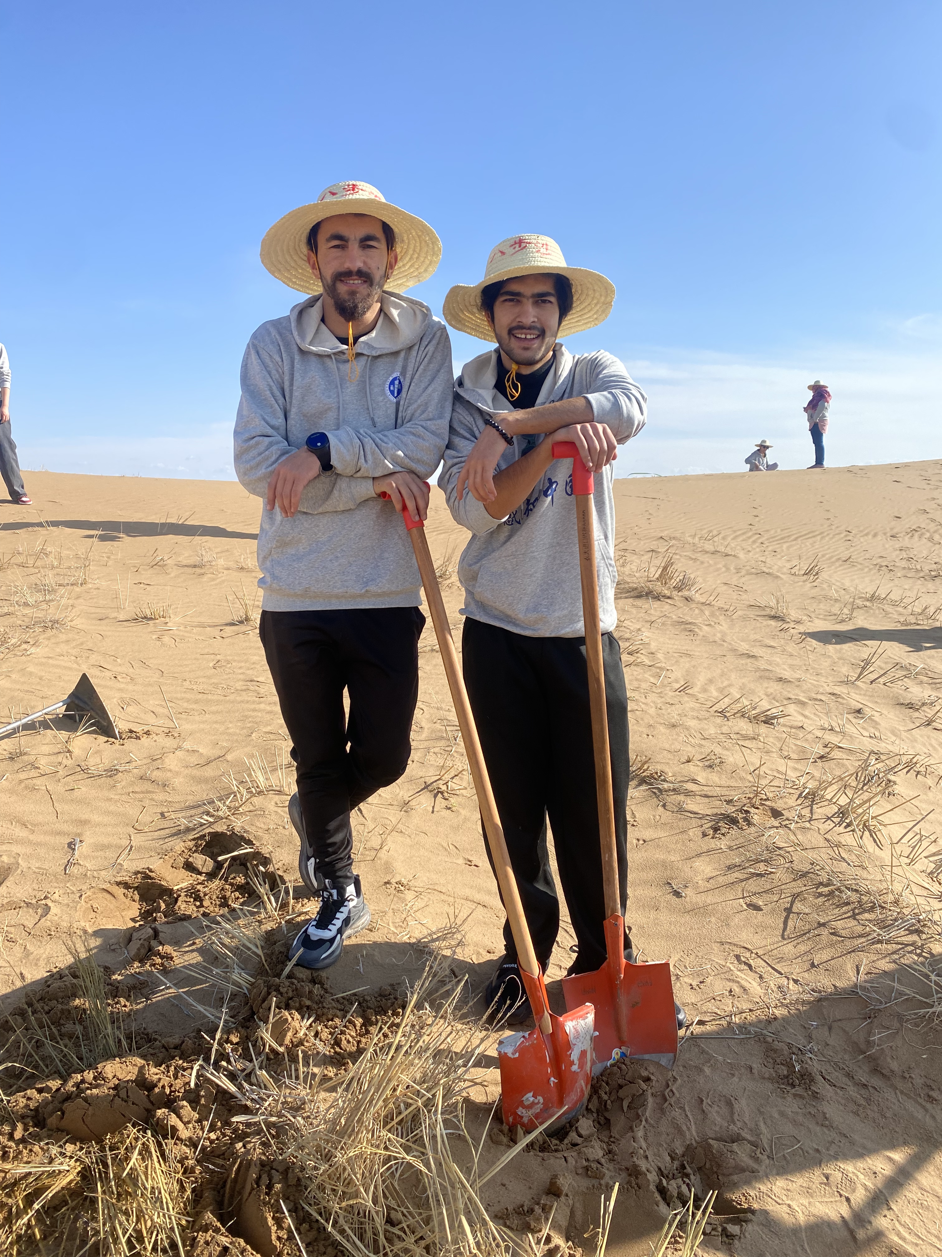 留學(xué)生在八步沙體驗(yàn)壓沙