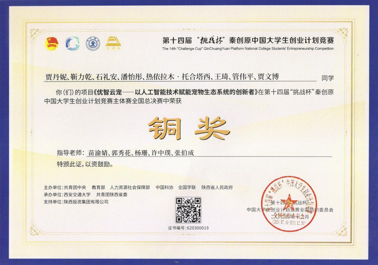 近日,由共青團中央、教育部、人力資源和社會保障部、中國科協(xié)、全國學聯(lián)、陜西省人民政府聯(lián)合主辦的第十四屆“挑戰(zhàn)杯”秦創(chuàng)原中國大學生創(chuàng)業(yè)計劃競賽獲獎名單公布。我校經濟管理學院推送的項目《優(yōu)智云寵——以人工智能技術賦能寵物生態(tài)系統(tǒng)的創(chuàng)新者》首次在主體賽全國總決賽中獲獎,實現(xiàn)了學校這項賽事的歷史性突破。