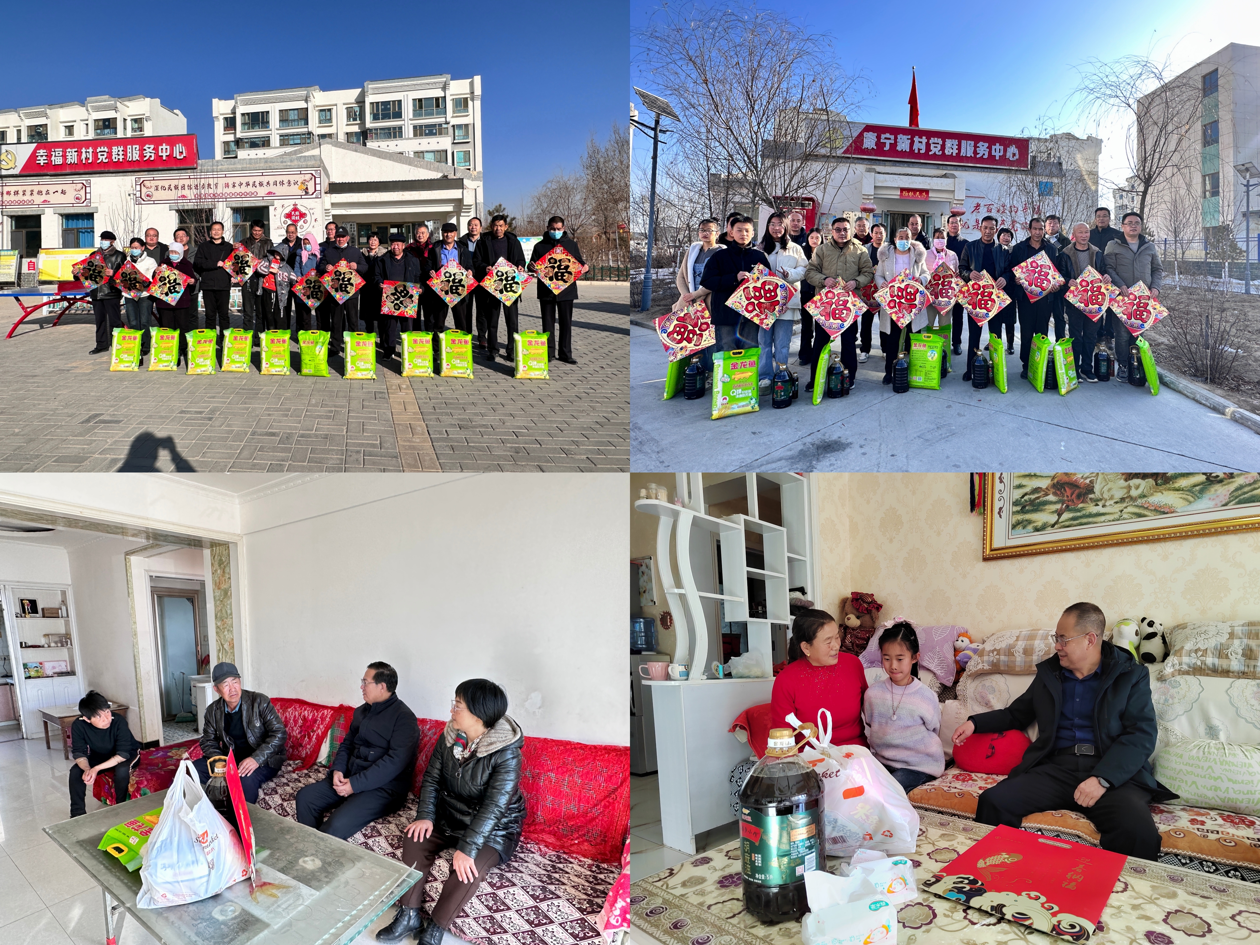 1月22日,學(xué)校在古浪縣橫梁鄉(xiāng)康寧新村、幸福新村開展春節(jié)前走訪慰問和送溫暖、送春聯(lián)、送祝?;顒?。黨委副書記、副校長張開禮,黨委副書記翟存祥,副校長何毅帶隊到村,與橫梁鄉(xiāng)政府和2個村委會相關(guān)同志就加快推進(jìn)鄉(xiāng)村振興開展共同研究,就來年幫扶工作作了對接溝通。校領(lǐng)導(dǎo)為困難群眾、結(jié)對幫扶戶、駐村工作隊送上春聯(lián)、福字、窗花、大米、胡麻油等慰問品,并開展文化共建,將學(xué)校的關(guān)心關(guān)愛傳遞到了基層群眾心里,進(jìn)一步豐富了群眾精神文化生活,營造了祥和、喜慶的節(jié)日氛圍。