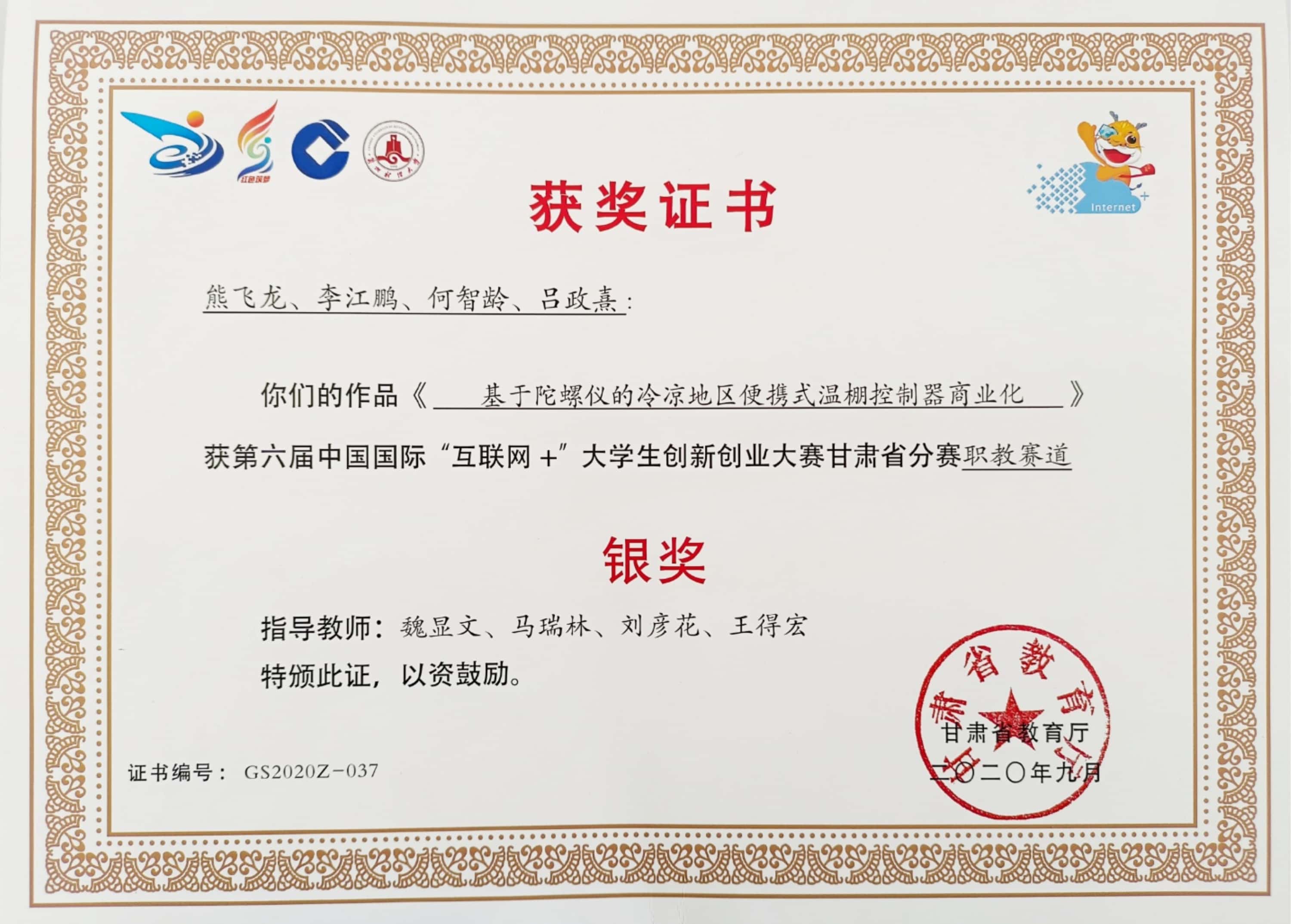 學(xué)生獲第六屆中國國際“互聯(lián)網(wǎng)+”大學(xué)生創(chuàng)新創(chuàng)業(yè)大賽甘肅省分賽銀獎(jiǎng)