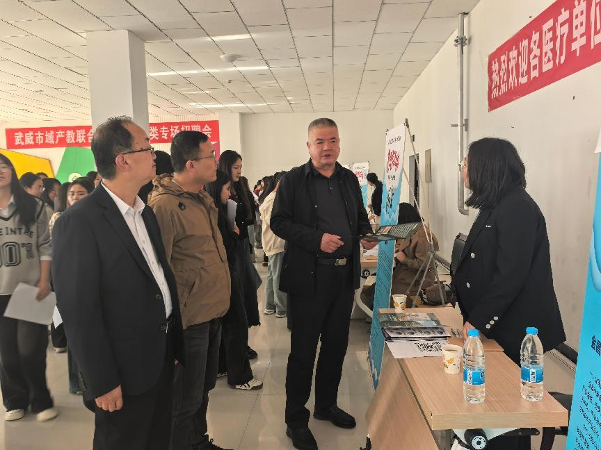 為深化產(chǎn)教融合、助力醫(yī)藥衛(wèi)生領(lǐng)域人才供需精準(zhǔn)對接,全面推進(jìn)2025屆畢業(yè)生充分就業(yè)。4月28日,學(xué)校主辦的“職通未來守護(hù)生命-2025屆醫(yī)藥衛(wèi)生類校園專場招聘會(huì)”在學(xué)生發(fā)展中心成功舉辦。學(xué)校黨委委員、副校長王守云,護(hù)理學(xué)院、醫(yī)學(xué)技術(shù)學(xué)院和藥學(xué)院負(fù)責(zé)人,全體輔導(dǎo)員、2022級班主任及畢業(yè)生參加。
