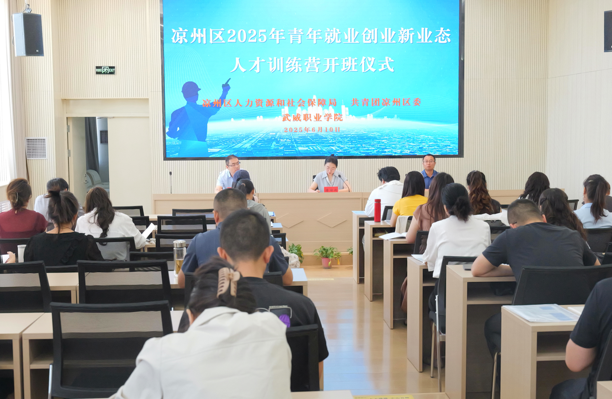 6月10日,由涼州區(qū)人力資源和社會保障局、共青團涼州區(qū)委主辦,學(xué)校承辦的涼州區(qū)2025年青年就業(yè)創(chuàng)業(yè)新業(yè)態(tài)人才訓(xùn)練營在學(xué)校圖書館報告廳開班,農(nóng)副產(chǎn)品、手工藝品、短視頻、直播帶貨、網(wǎng)絡(luò)營銷、網(wǎng)約配送等新業(yè)態(tài)方面的從業(yè)人員和有志于推廣“一鎮(zhèn)一業(yè)、一村一品”的優(yōu)秀創(chuàng)業(yè)就業(yè)人員共50余人參加了培訓(xùn)。