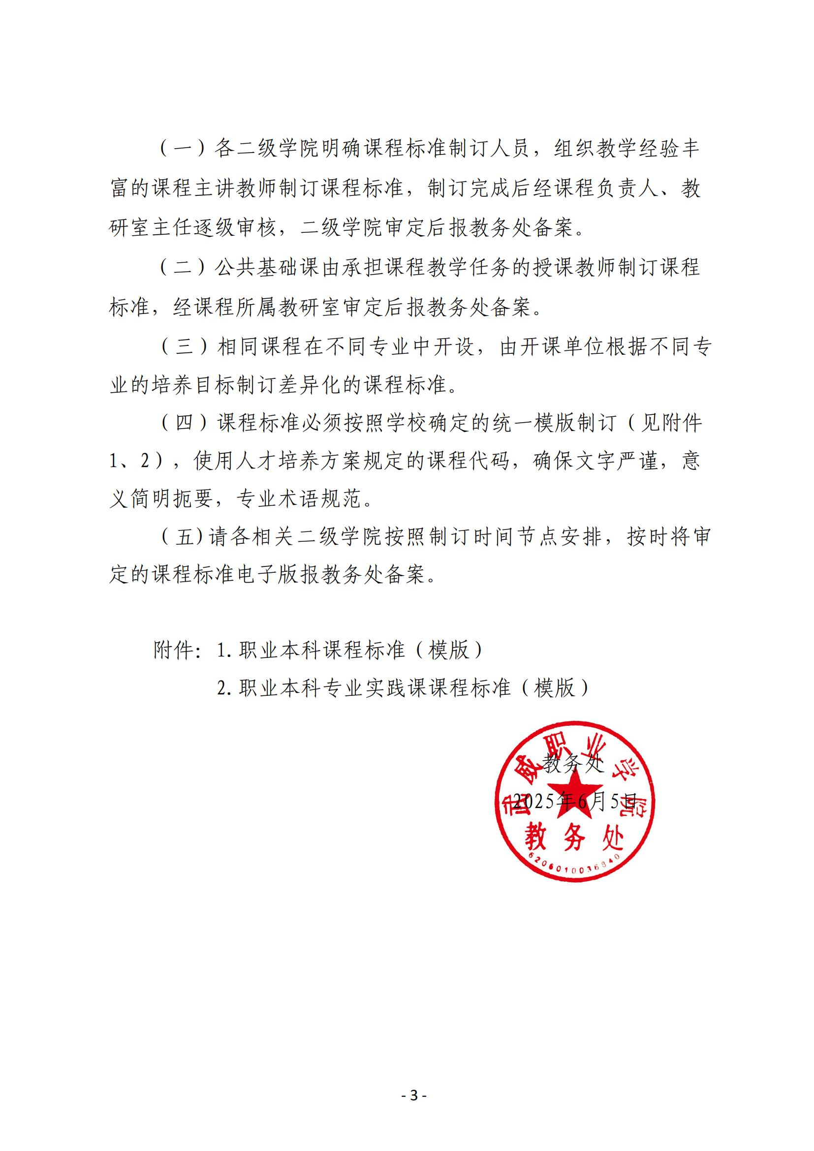 關(guān)于做好2025級職業(yè)本科專業(yè)課程標(biāo)準(zhǔn)制訂工作的通知