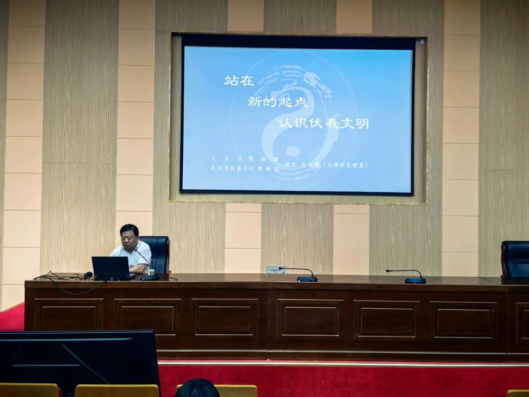 講座中,劉玉璞以習(xí)近平總書記考察天水伏羲廟的重要講話為切入點,圍繞“中華文明起源”“鑄牢中華民族共同體意識”“實現(xiàn)中華民族偉大復(fù)興”三大維度展開,系統(tǒng)梳理了伏羲文化研究的最新成果,指出伏羲文明是中華文明的重要源頭,其文化符號深刻體現(xiàn)了中華民族早期先民的宇宙觀與價值觀。通過考古發(fā)現(xiàn)與文獻(xiàn)互證,他闡釋了伏羲文化在推動多民族融合、促進(jìn)文化認(rèn)同中的歷史作用,并強(qiáng)調(diào)伏羲文化在當(dāng)代的價值不僅在于學(xué)術(shù)研究,更需轉(zhuǎn)化為增強(qiáng)民族文化自信、服務(wù)社會發(fā)展的精神動力。這場講座以生動的語言和詳實的例證,為聽眾勾勒出一部從史前文明到當(dāng)代傳承的伏羲文化發(fā)展史,現(xiàn)場反響熱烈。