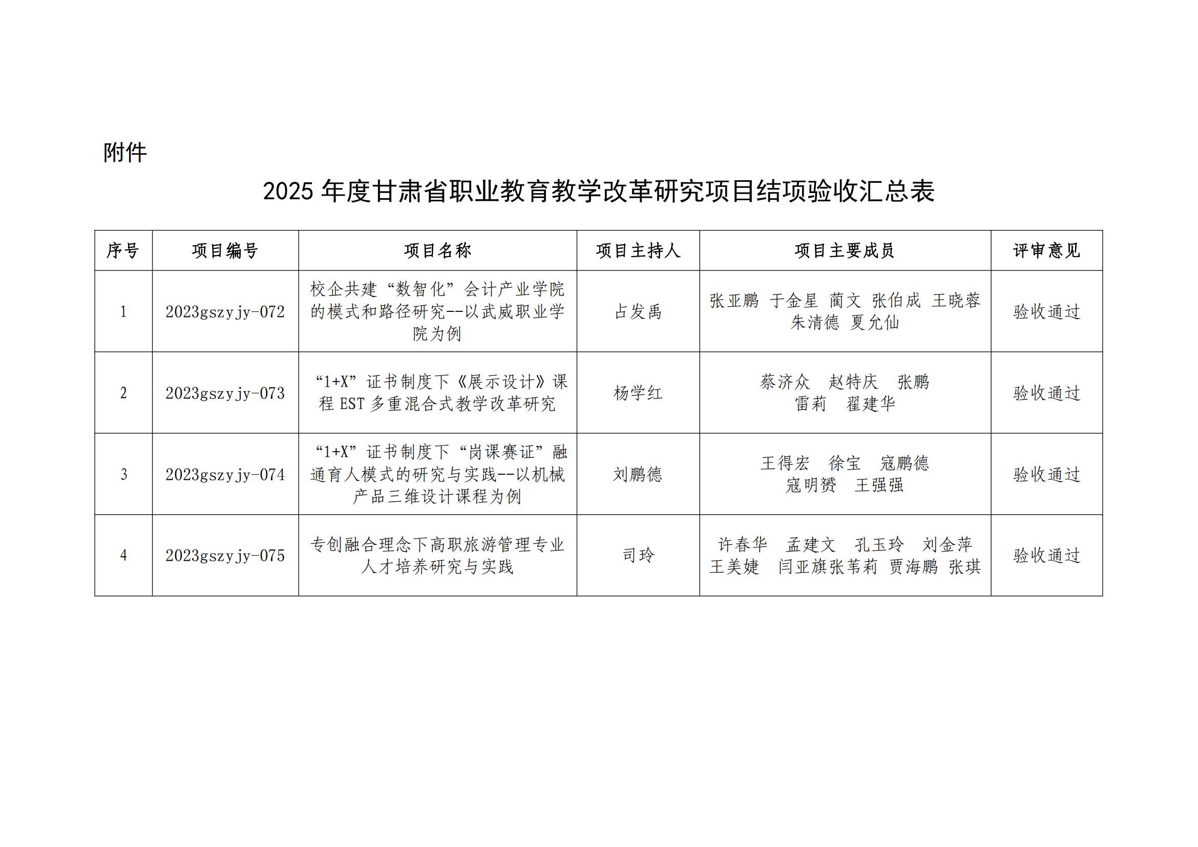 關(guān)于甘肅省職業(yè)教育教學(xué)改革研究項(xiàng)目結(jié)項(xiàng)驗(yàn)收校級(jí)評(píng)審結(jié)果的公示