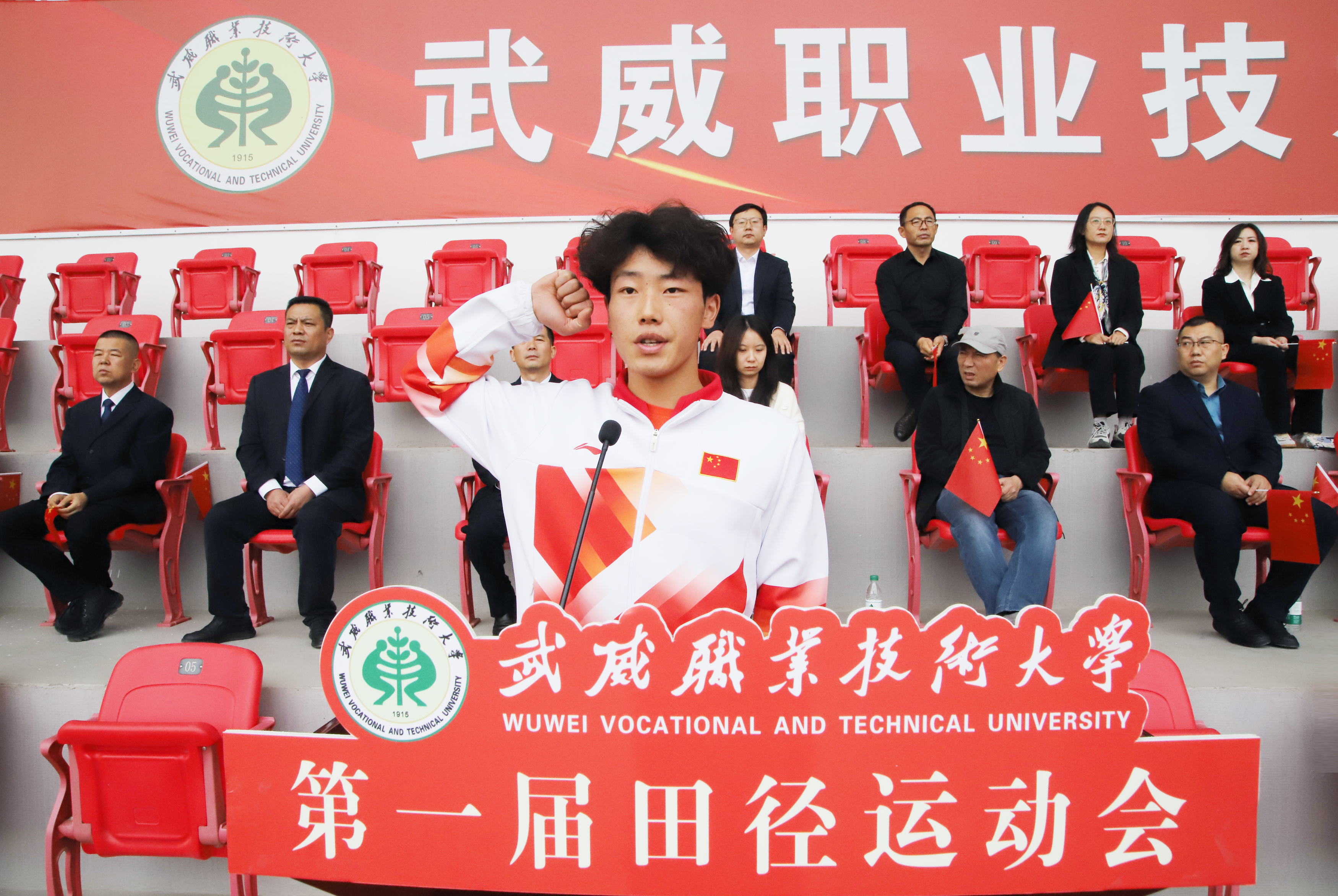 王宏宣布武威職業(yè)技術(shù)大學(xué)第一屆田徑運(yùn)動(dòng)會(huì)開(kāi)幕。