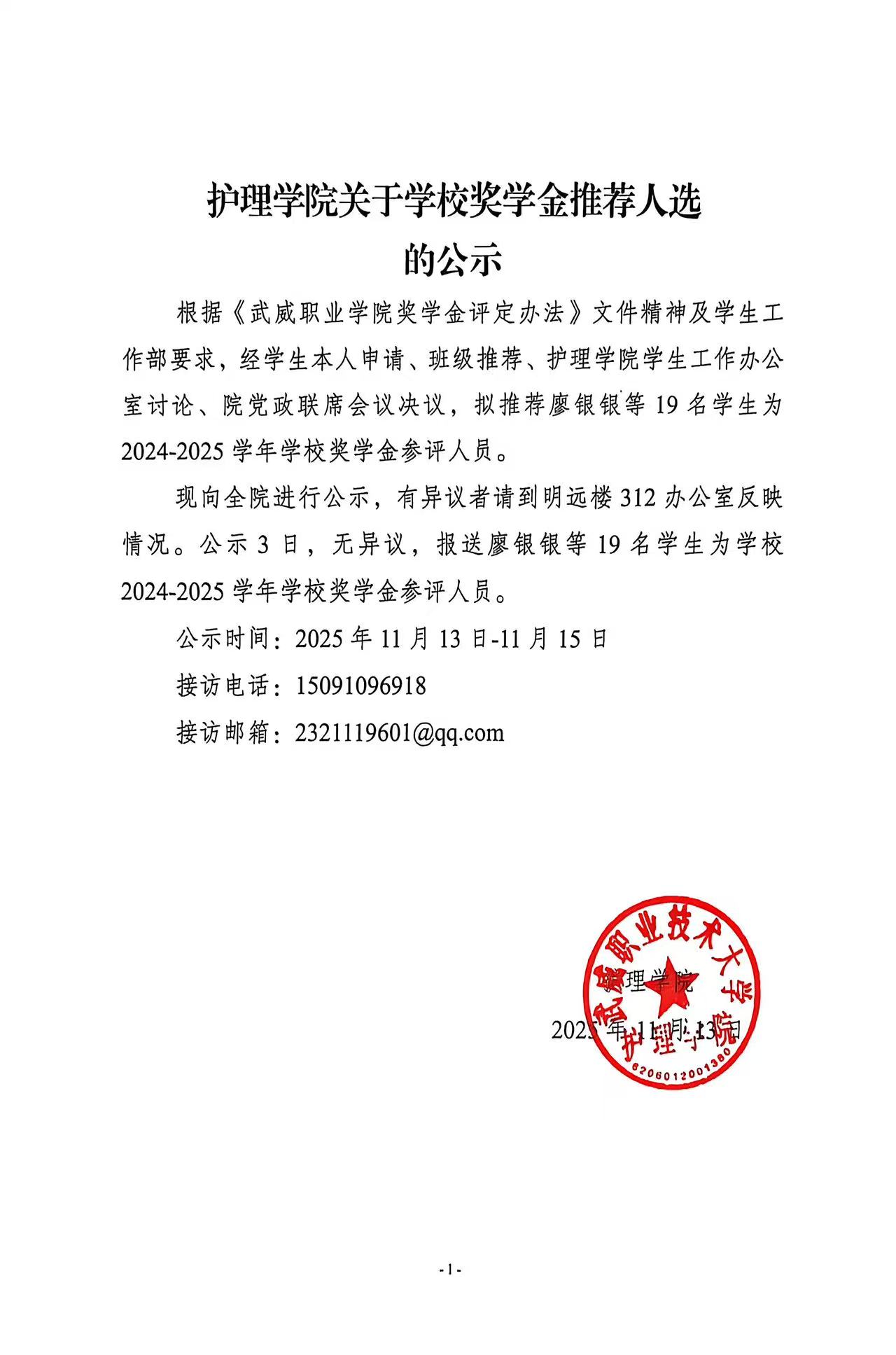 護(hù)理學(xué)院關(guān)于學(xué)校獎(jiǎng)學(xué)金推薦人選的公示