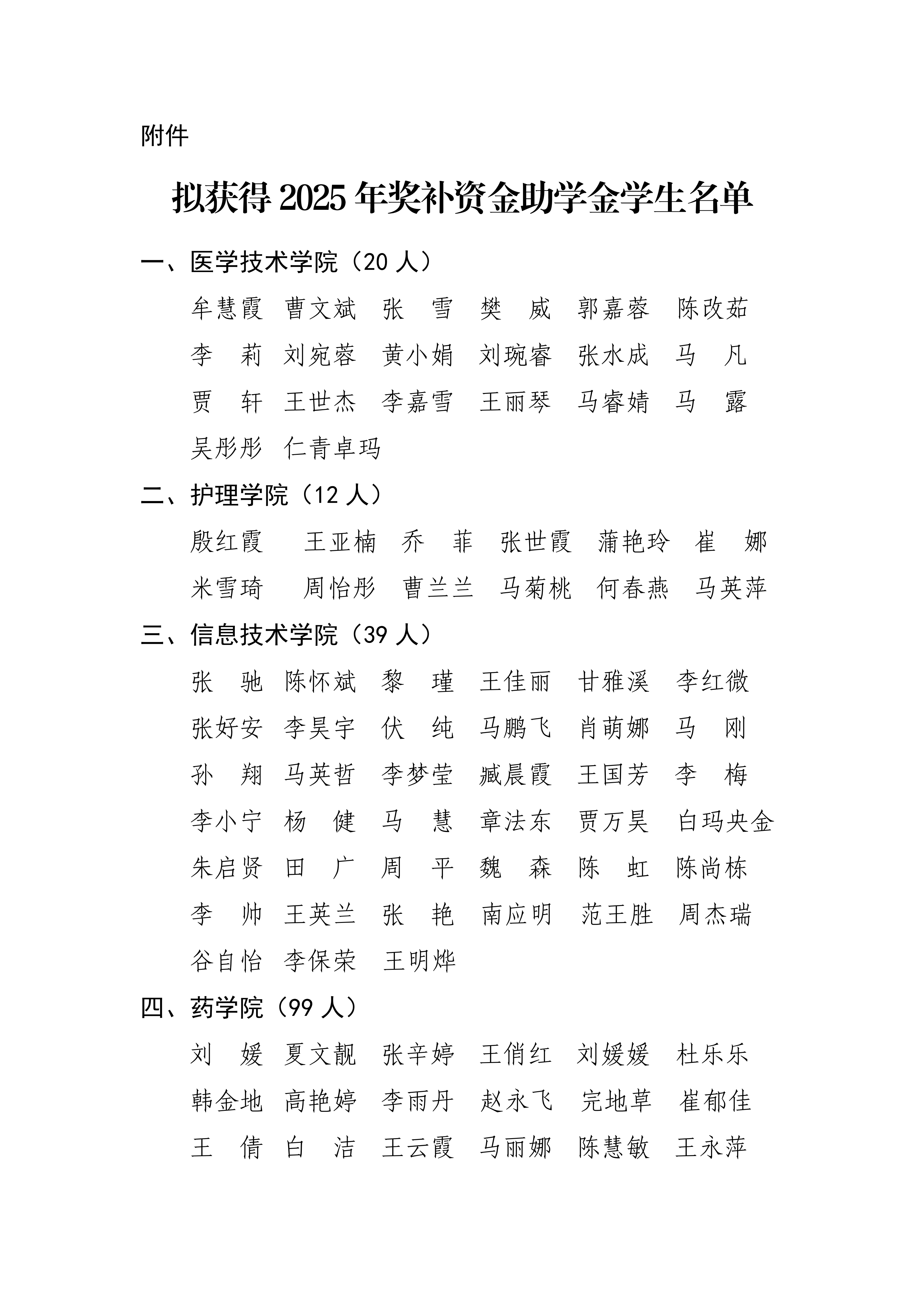 學校關于擬獲得2025年獎補資金助學金學生名單的公示
