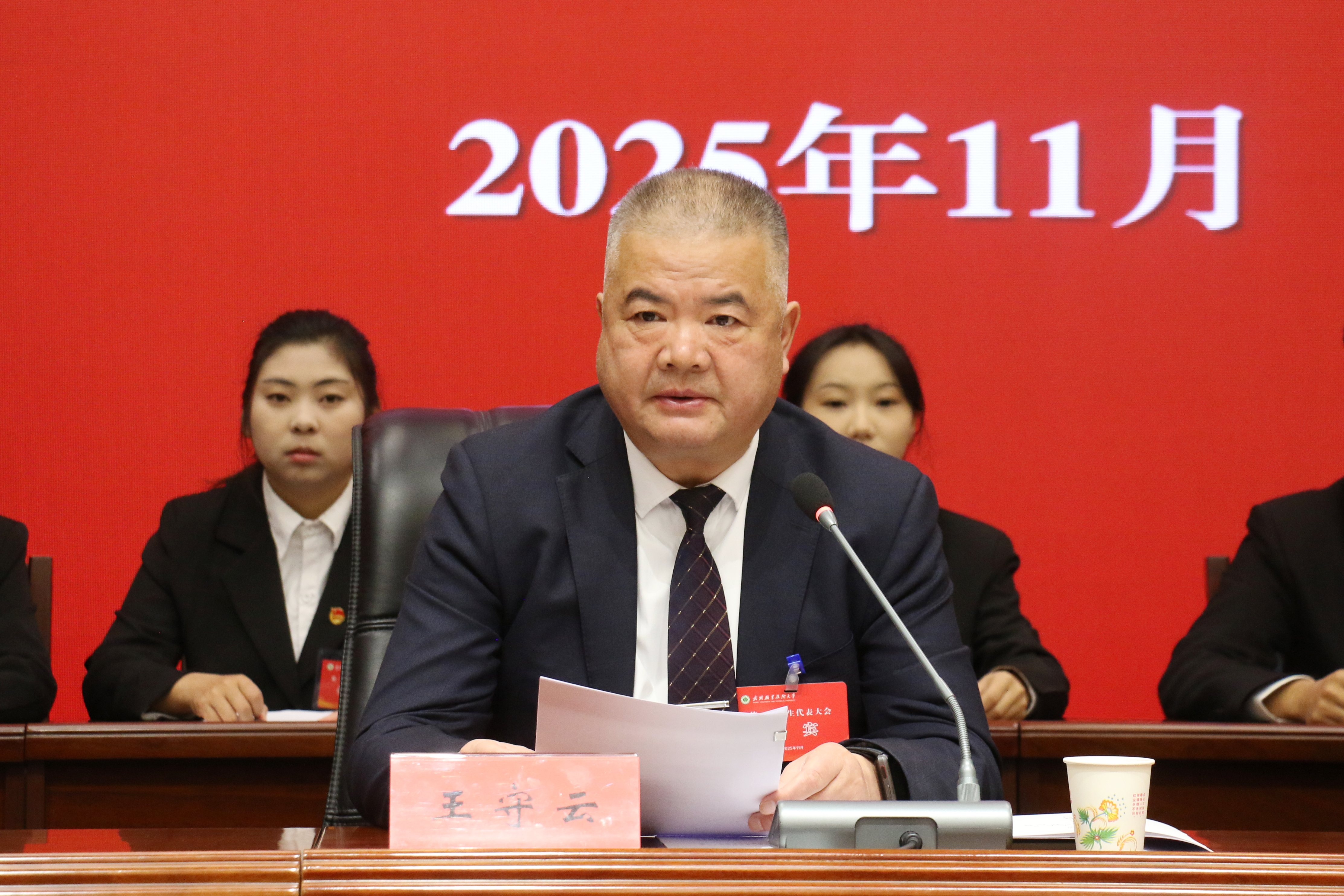 王守云代表學(xué)校黨委對(duì)大會(huì)召開表示熱烈祝賀,向全校青年學(xué)生致以親切問(wèn)候。他充分肯定了過(guò)去一年全校各級(jí)學(xué)生組織所取得的突出成績(jī),并提出了三點(diǎn)希望:一是強(qiáng)化思想引領(lǐng),用理想信念校準(zhǔn)青春航向。讓聽黨話、跟黨走的信念成為學(xué)校最鮮明的青春底色。二是勇?lián)鷷r(shí)代使命,用專業(yè)精進(jìn)彰顯青春底氣。廣大青年要錘煉過(guò)硬本領(lǐng),勇于在實(shí)訓(xùn)實(shí)戰(zhàn)、重大比賽中挑重?fù)?dān)、當(dāng)先鋒,努力成長(zhǎng)為堪當(dāng)民族復(fù)興大任的時(shí)代新人。三是發(fā)揮橋梁作用,用暖心服務(wù)彰顯擔(dān)當(dāng)作為。廣泛收集同學(xué)意見,提出高質(zhì)量提案,為學(xué)校完善治理體系、提升育人水平貢獻(xiàn)青春的智慧和力量。