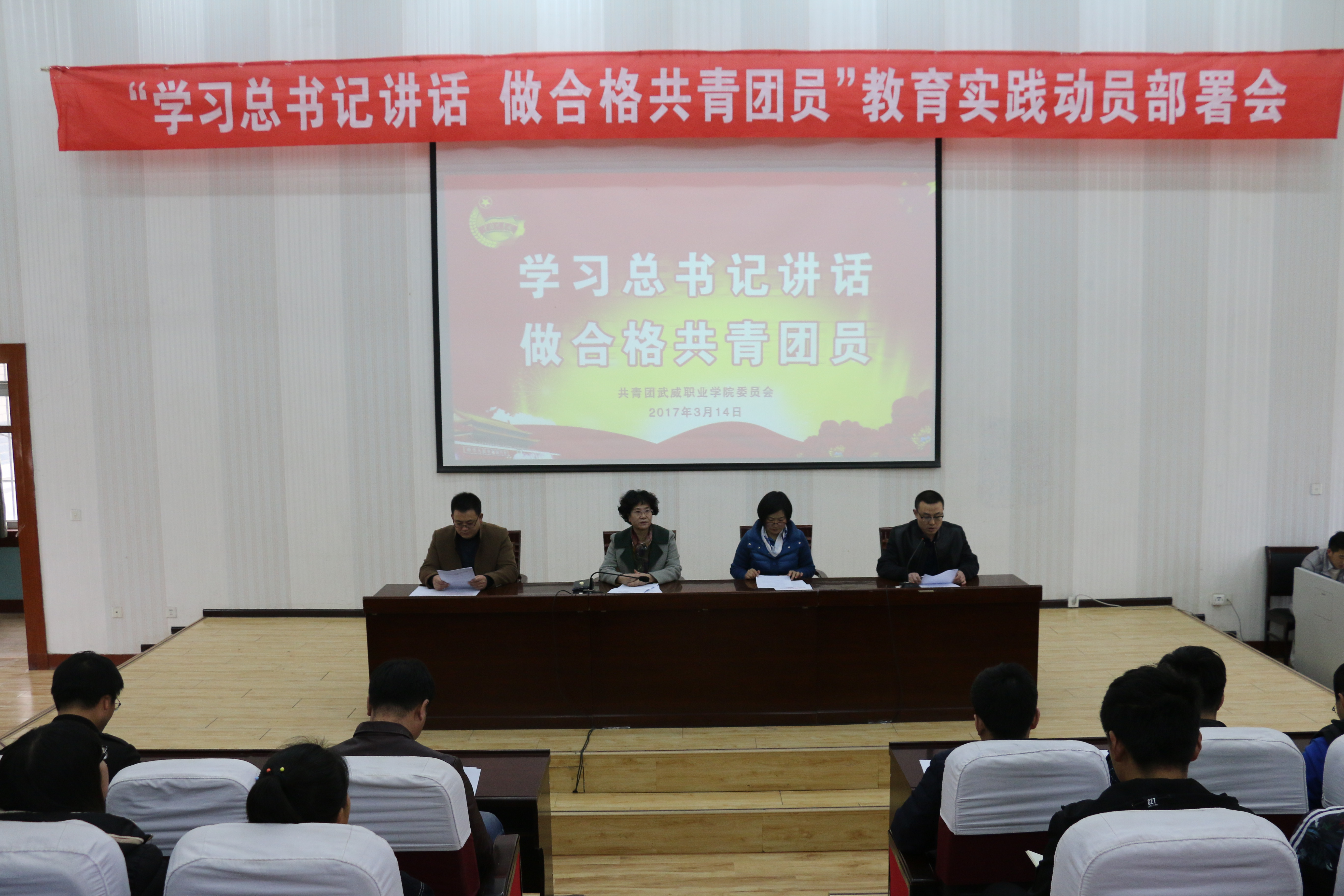 會(huì)議傳達(dá)了《共青團(tuán)武威職業(yè)學(xué)院委員會(huì)2017年工作要點(diǎn)》、《關(guān)于學(xué)院共青團(tuán)開(kāi)展“學(xué)習(xí)總書(shū)記講話(huà) 做合格共青團(tuán)員”教育實(shí)踐的通知》,并對(duì)“一學(xué)一做”教育實(shí)踐作了安排部署。