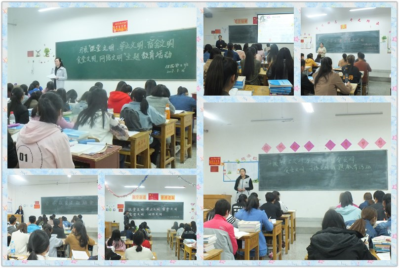 各班班會從什么是文明講起,聯(lián)系生活實際,講述校園文明、家庭文明和社會文明的重要性。各班主任首先向同學(xué)們闡述了對于當(dāng)代大學(xué)生來說,文明修身和專業(yè)學(xué)習(xí)同等重要,專業(yè)學(xué)習(xí)主要培養(yǎng)大學(xué)生的科學(xué)精神,而文明修身主要培養(yǎng)大學(xué)生的人文精神,二者缺一不可。通過講述身邊同學(xué)的故事,指出校園、家庭和社會上存在的不文明、不和諧現(xiàn)象,要求同學(xué)們對自身言行舉止進(jìn)行約束,共同攜手,提高自身文明行為,提升大家的思想道德和人文素質(zhì)。隨后,由同學(xué)們就“文明行為”發(fā)表了自己的看法,大家由主題聯(lián)想到自己身邊的一些不文明的行為,并就這些不文明行為發(fā)表了自己觀點(diǎn),同時,同學(xué)們就如何提高自身道德素養(yǎng)、如何更好地做到文明修身提出了自己的建議和意見。經(jīng)過同學(xué)們的積極發(fā)言和認(rèn)真討論,大家認(rèn)為只有文明的個人才會有文明的班級團(tuán)體,才會有文明的校園,才會有和諧的社會。