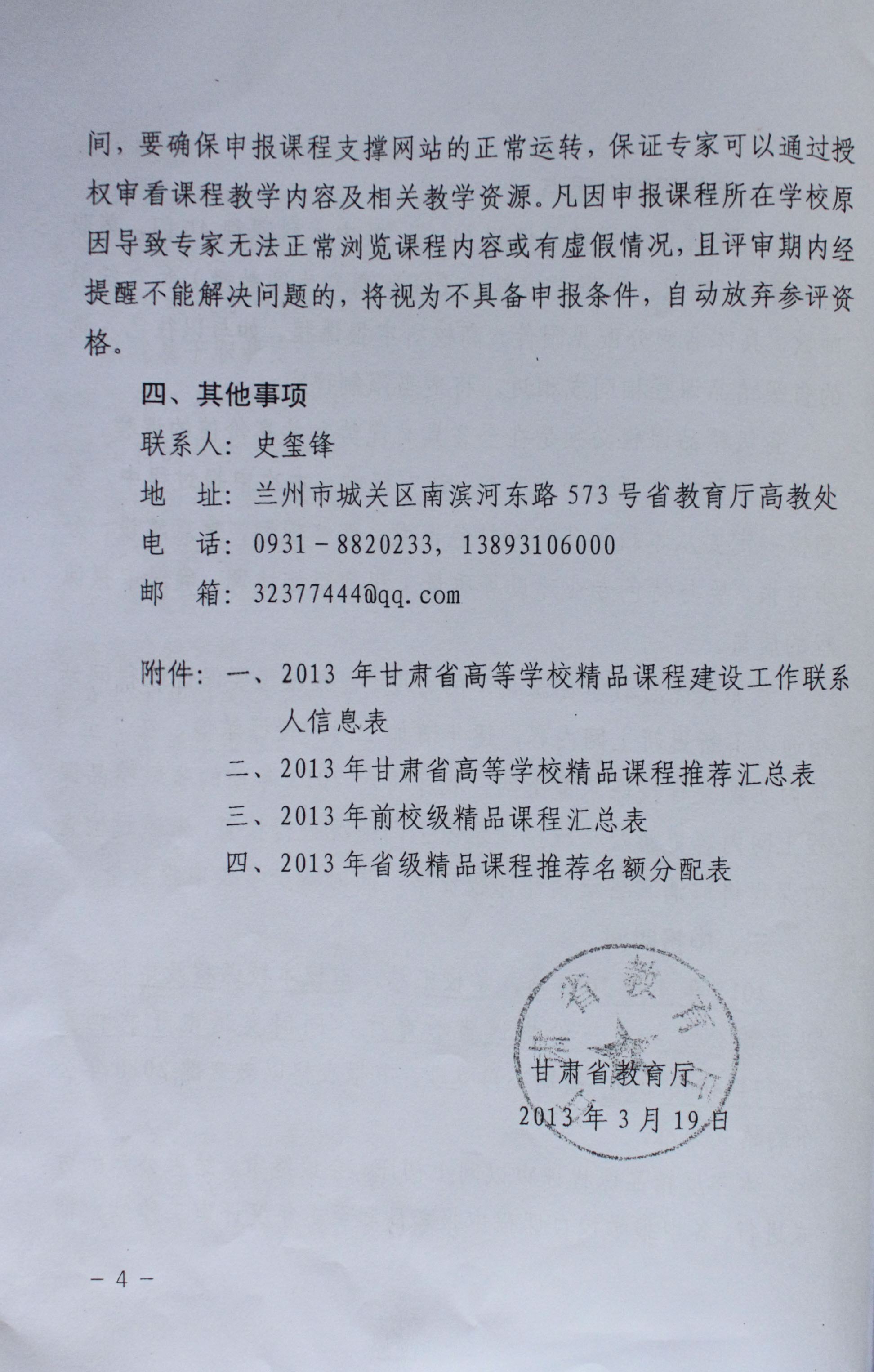 2.經研究確定為推薦申報省級精品課程的,于4月18日前將定稿的2013年省級精品課程申報書電子檔傳至教務處趙曉麗處,申報表格以教育部2010年公布的格式為準。