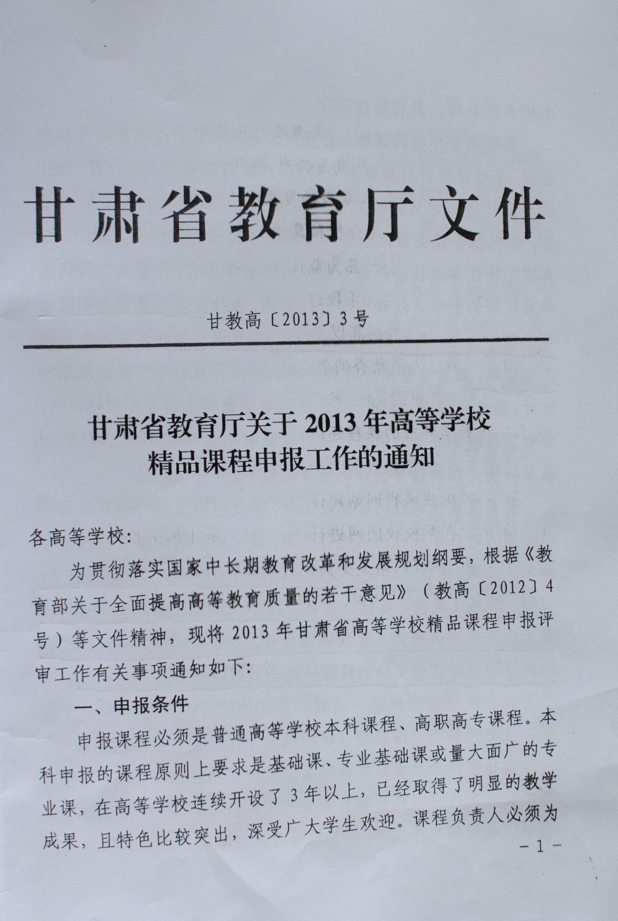 根據《甘肅省教育廳關于2013年高等學校精品課程申報工作的通知》(甘教高〔2013〕3號)文件要求,本年度省級精品課程申報時間提前,現(xiàn)就2013年度省級精品課程申報的有關事項安排如下: