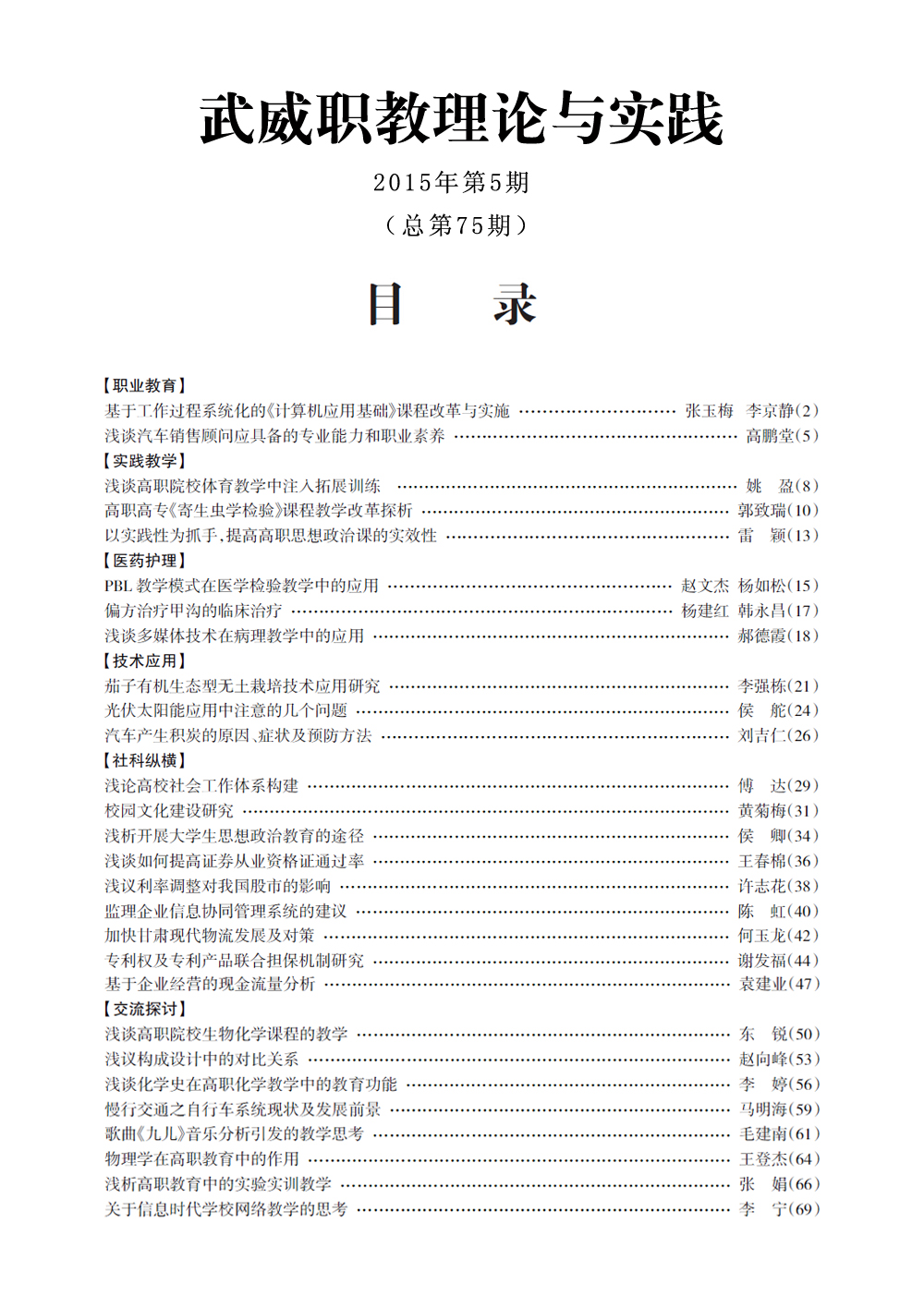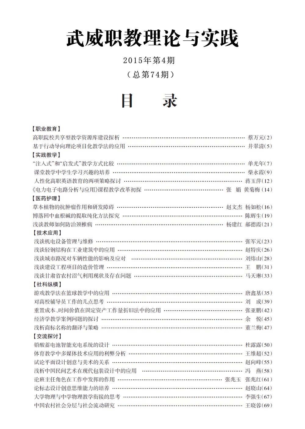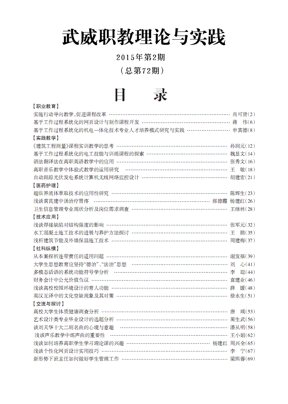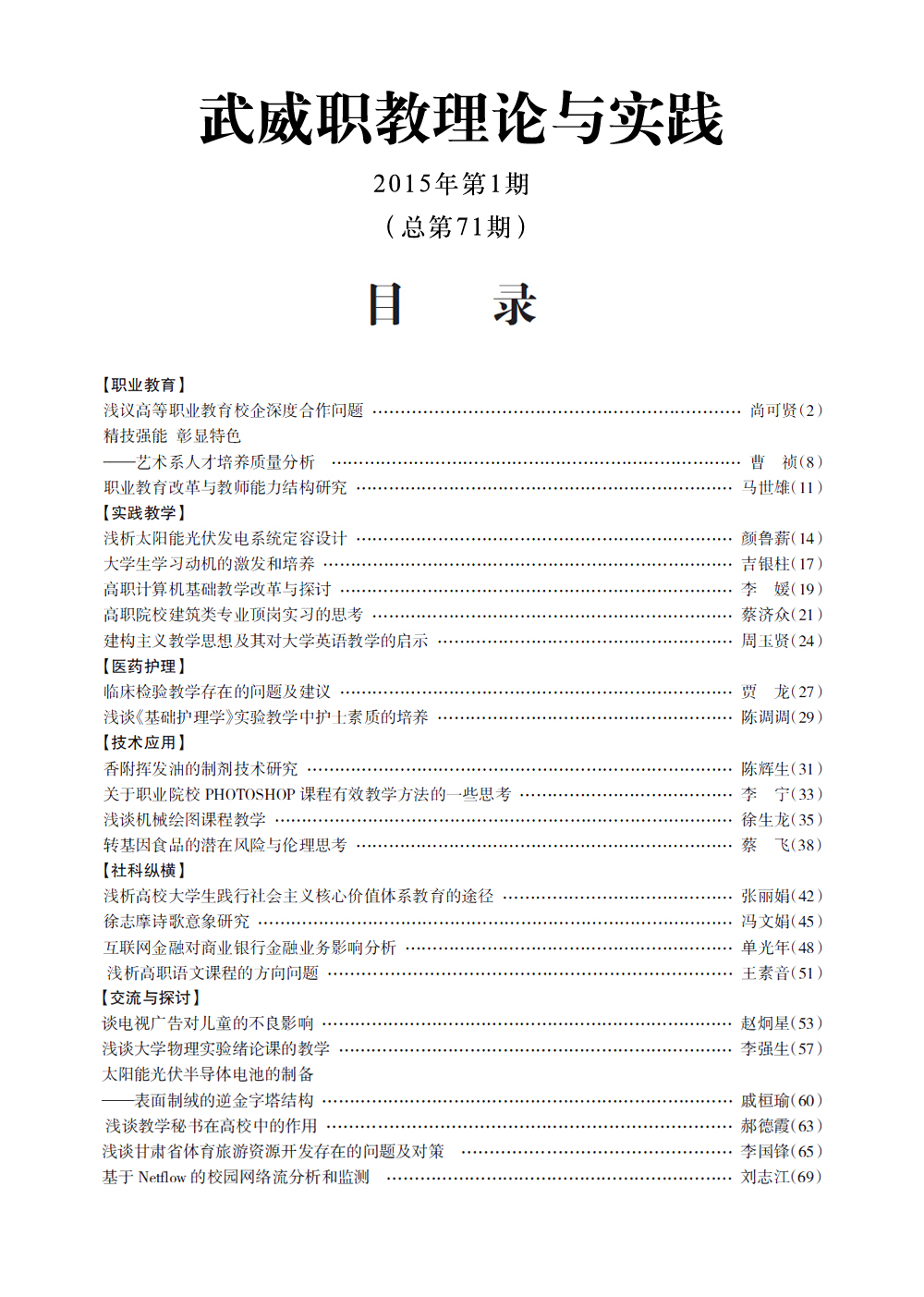 2015年《武威職教理論與實(shí)踐》目錄