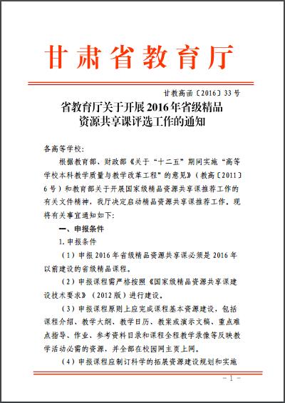 省教育廳關(guān)于開展2016年省級精品資源共享課評選工作的通知