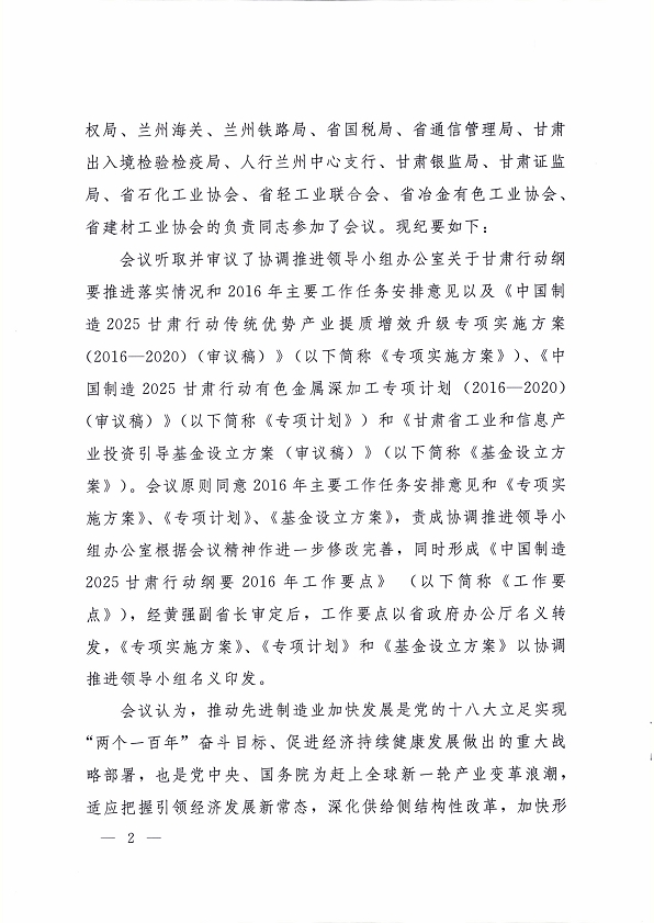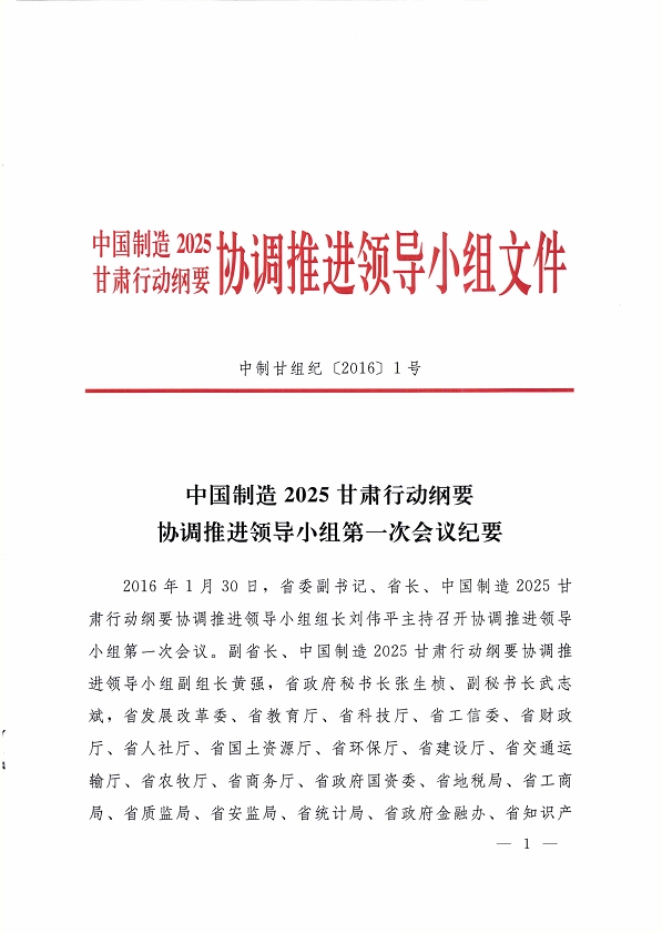 附件:中國制造 2025 甘肅行動綱要協(xié)調(diào)推進(jìn)領(lǐng)導(dǎo)小組第一次會議紀(jì)要