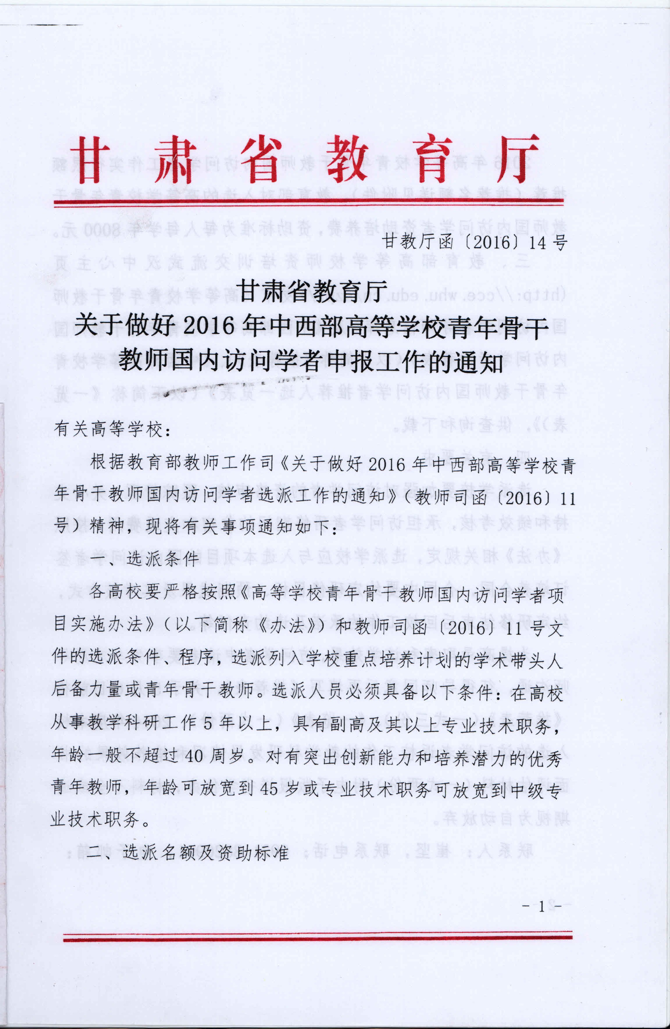 關(guān)于做好2016年青年骨干教師國內(nèi)訪問學(xué)者申報(bào)工作的通知