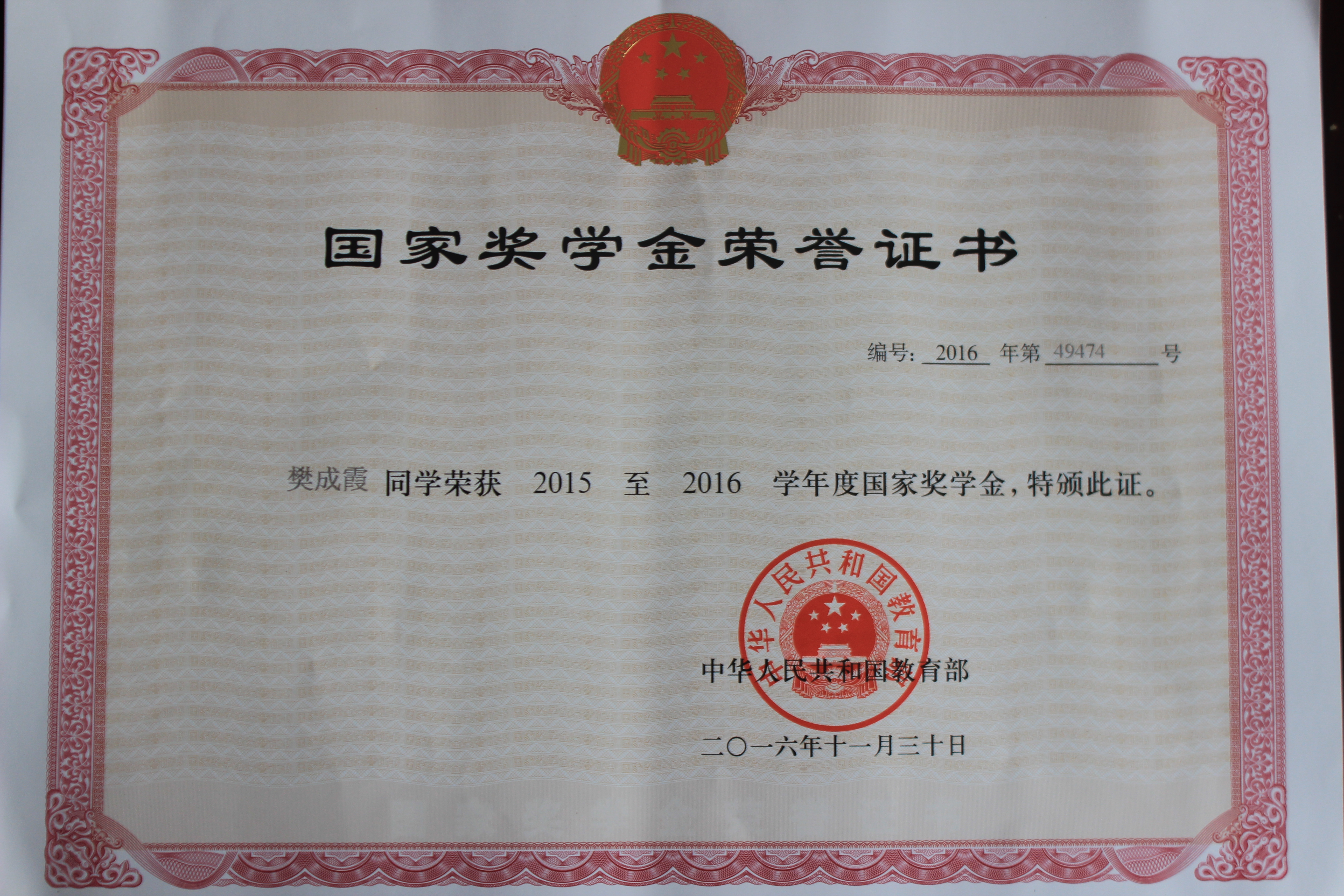 國(guó)家獎(jiǎng)學(xué)金獲得者-樊成霞