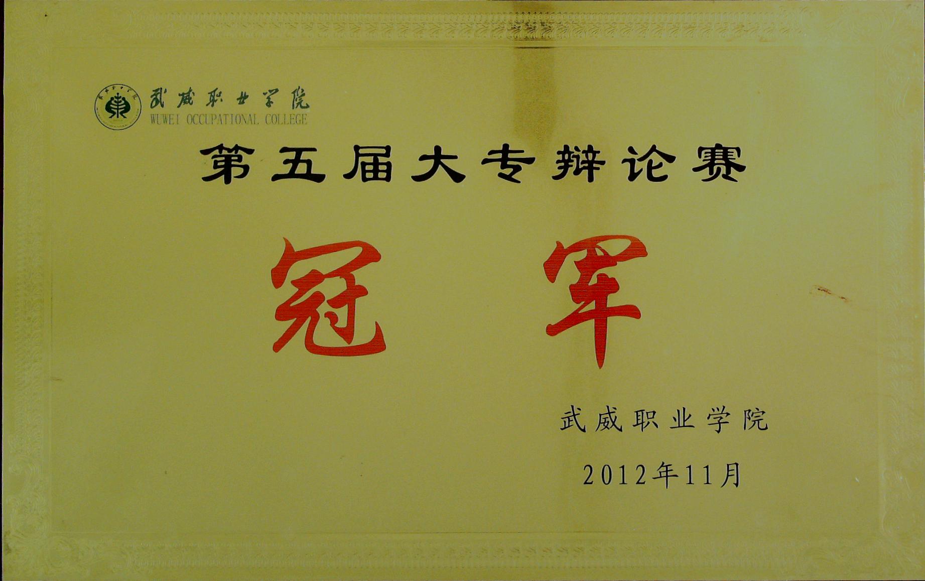 第五屆大專辯論賽冠軍