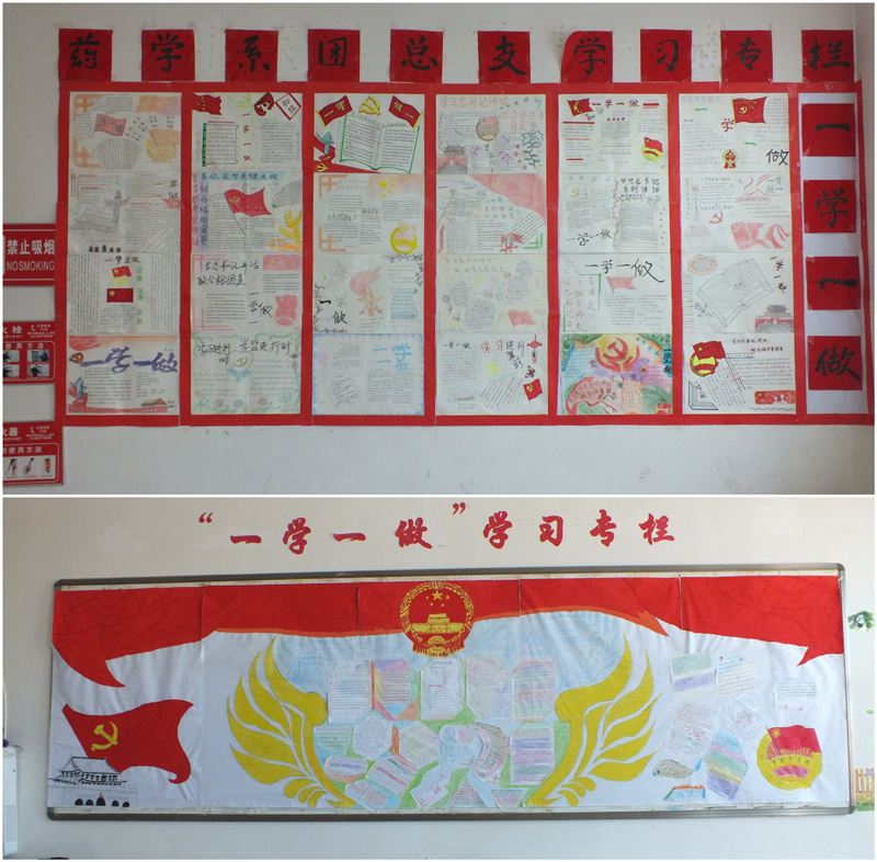 為深入貫徹落實(shí)“學(xué)習(xí)總書記講話,做合格共青團(tuán)員”教育實(shí)踐,扎實(shí)推進(jìn)“一學(xué)一做”學(xué)習(xí)教育,在系黨總支的領(lǐng)導(dǎo)下,經(jīng)過認(rèn)真細(xì)致策劃布置,4月24日下午,藥學(xué)系團(tuán)總支組織開展了“一學(xué)一做”黑板報??u比活動。