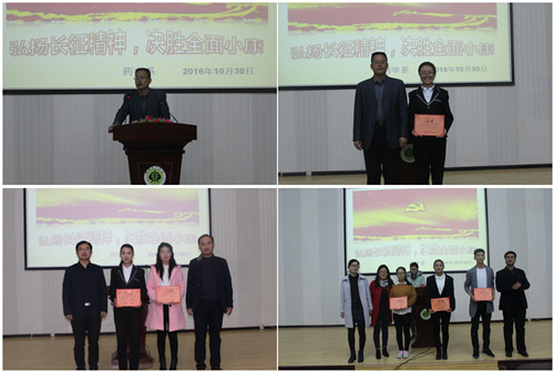 為紀念紅軍長征勝利80周年,激發(fā)師生弘揚偉大的長征精神,同時為豐富校園文化生活,展示青春正能量,藥學系團總支依據(jù)院團委的通知精神和系團學工作委員會關于增加學生課余活動的會議要求,于10月30日在正德廳組織開展了“傳承長征精神,筑我青春夢想”主題演講比賽。藥學系主任魏潤明出席了本次活動,各班班主任擔任本次比賽評委,2016級全體學生和2015級各班學生代表觀看了比賽。