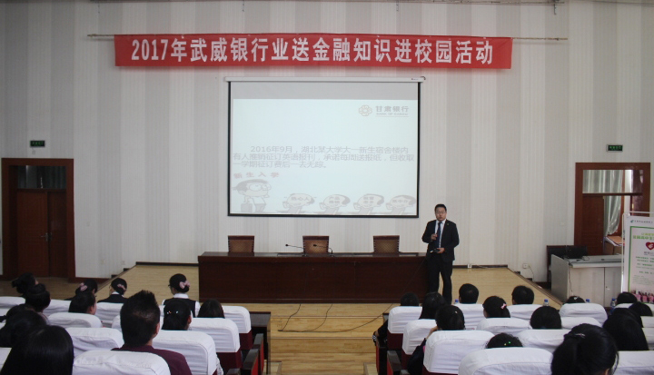 為幫助同學(xué)們了解和掌握銀行業(yè)消費(fèi)常識(shí),增強(qiáng)科學(xué)合理使用銀行產(chǎn)品和服務(wù)的能力,提升同學(xué)們對(duì)金融業(yè)務(wù)的風(fēng)險(xiǎn)防范和識(shí)別能力,5月11日下午,經(jīng)濟(jì)管理系與甘肅銀行武威分行、郵政儲(chǔ)蓄銀行武威市分行在學(xué)院正德廳聯(lián)合開展了“銀行業(yè)送金融知識(shí)進(jìn)校園”宣講活動(dòng)。經(jīng)濟(jì)管理系會(huì)計(jì)電算化、證券與期貨專業(yè)的350余名同學(xué)參加了此次宣講會(huì)。