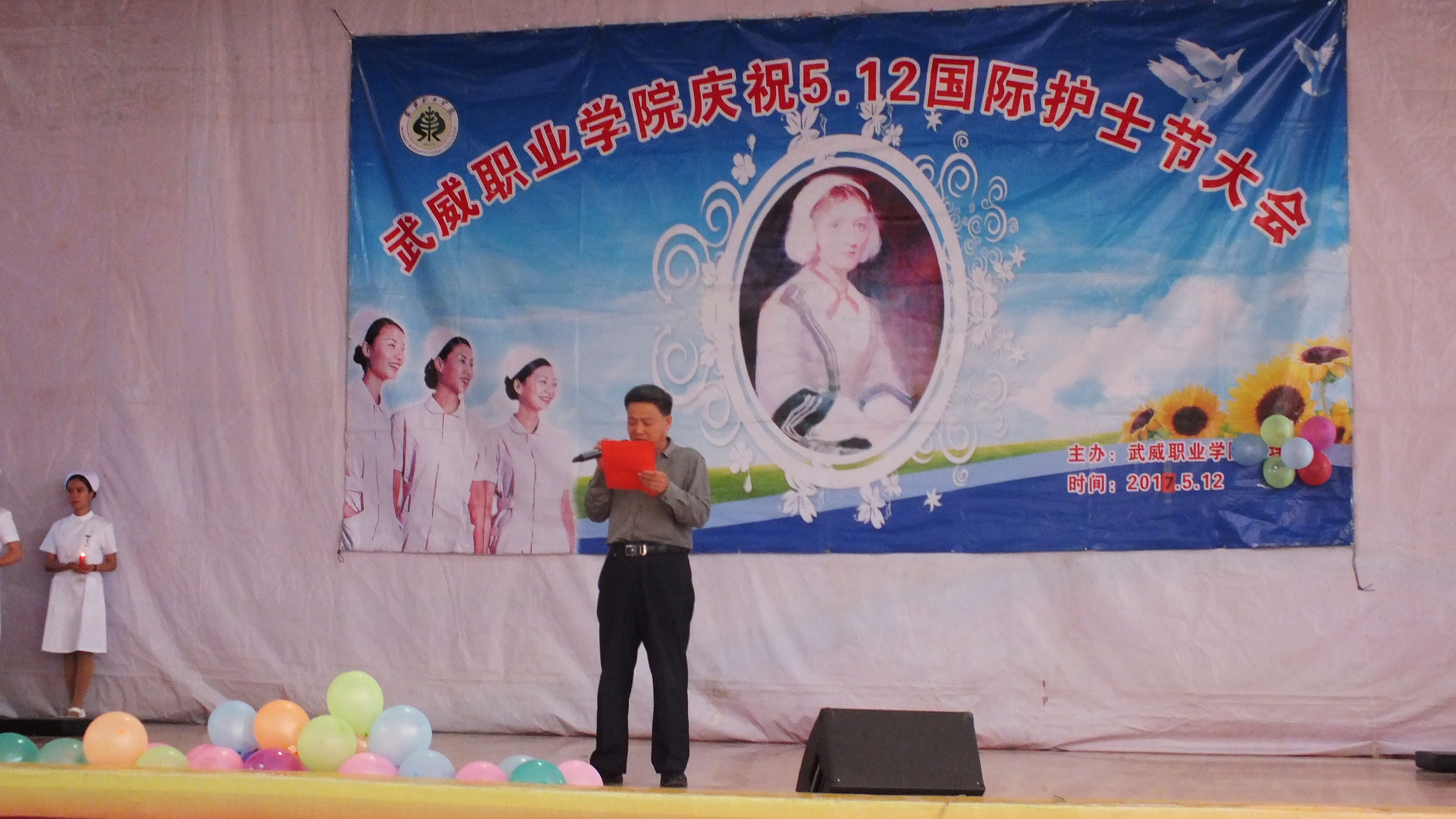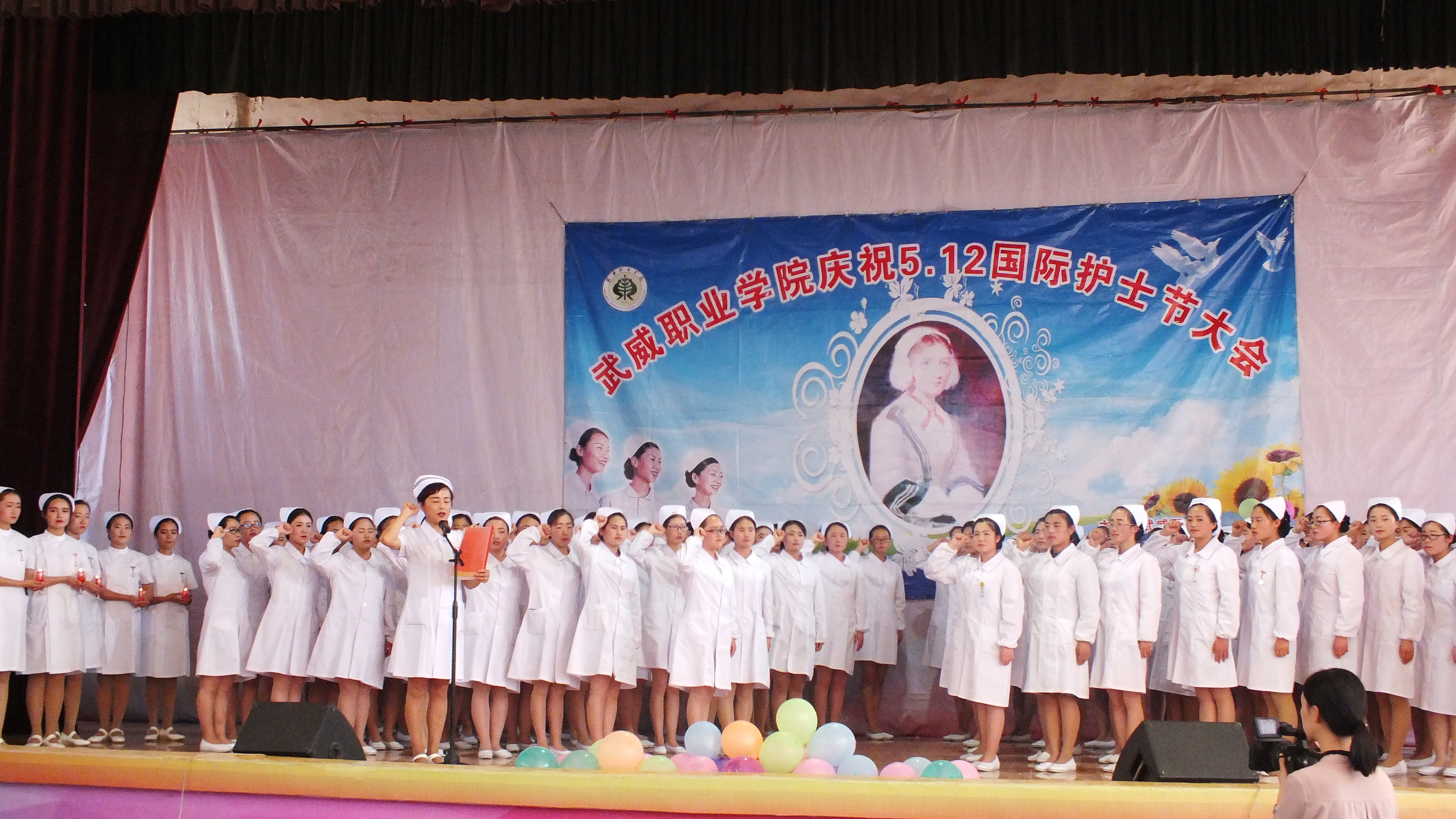 為繼承和弘揚南丁格爾精神,積極推動護理專業(yè)人才建設和職業(yè)內涵塑造,展示我院護理專業(yè)師生風采,在第106個國際護士節(jié)來臨之際,學院于5月12日下午在大禮堂隆重舉辦了慶祝國際護士節(jié)活動,武威市衛(wèi)生計生委副主任潘玉華、學院黨委副書記趙明、紀委書記張富國、副院長王永緒、直屬附屬醫(yī)院護理部主任、相關處室領導及護理系全體師生1200余人參與了本次活動?;顒影ㄗo士授帽儀式,護理實踐技能操作表演,第四屆護理技能大賽頒獎,慶祝“5.12”護士節(jié)文藝演出等內容。