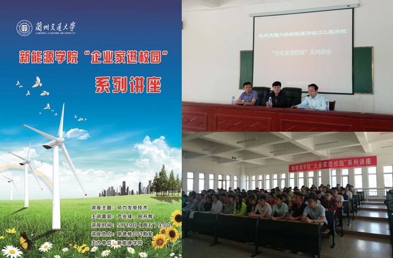 為促進(jìn)新能源專業(yè)學(xué)生就業(yè),加強(qiáng)與新能源企業(yè)的交流合作。5月19日上午,新能源學(xué)院邀請(qǐng)武威航天萬源電機(jī)制造有限公司辦公室主任兼黨支部書記嚴(yán)兆鋒、技術(shù)部經(jīng)理田開輝兩位企業(yè)家在明德樓為新能源科學(xué)與工程全體學(xué)生做了以“風(fēng)力發(fā)電技術(shù)”為主題的講座。本次講座由新能源學(xué)院辦公室副主任任陶主持。
