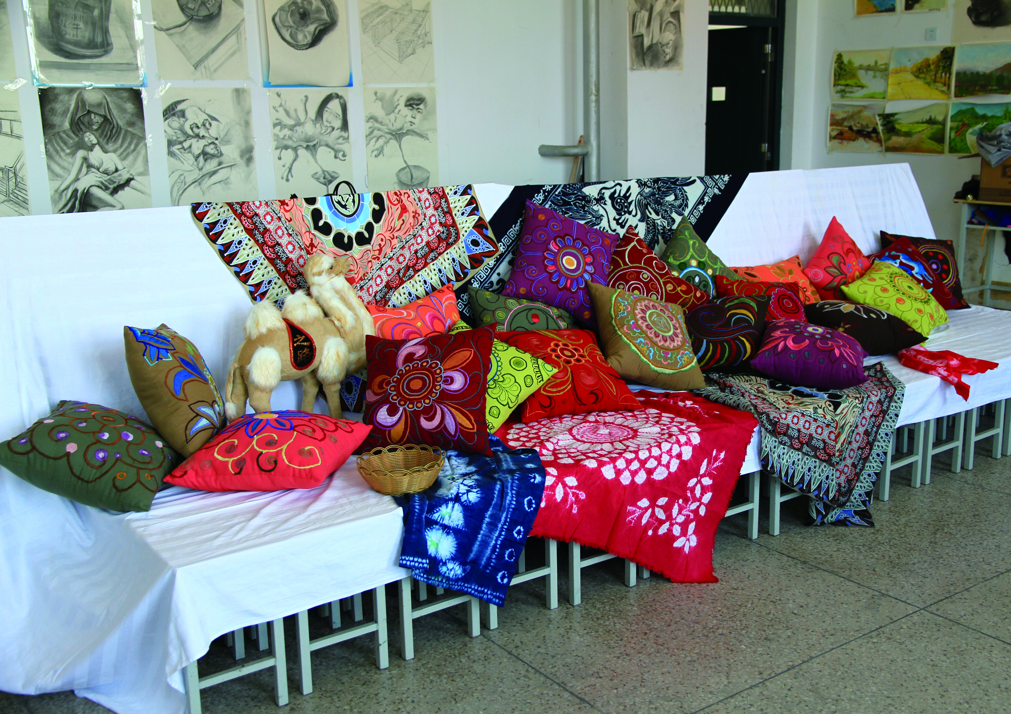 恰逢“一帶一路”偉大戰(zhàn)略構(gòu)想開展之際,近日,為迎接“第二屆敦煌絲綢之路國際文化博覽會”的勝利召開,人文藝術(shù)教育系組織學(xué)前教育專業(yè)師生積極研發(fā)創(chuàng)意旅游作品,參加由省婦聯(lián)、省教育廳、省高校工委組織的“第一屆女大學(xué)生巧手創(chuàng)意大賽”。學(xué)院人文藝術(shù)教育系利用武威地處絲綢之路經(jīng)濟(jì)帶“咽喉”的區(qū)位優(yōu)勢,挖掘古絲綢之路文化,激發(fā)學(xué)生創(chuàng)新創(chuàng)業(yè)能力,以精美的敦煌壁畫藻井圖案為造型元素,用刺繡的手法設(shè)計制作裝飾、實用效果極佳的抱枕等紡織作品,作品傳承了古絲綢之路文化,承載著廣大師生對敦煌藝術(shù)的向往和追求。參賽作品展現(xiàn)了人文藝術(shù)教育系學(xué)生的精美刺繡工藝和獨特的創(chuàng)意手法,體現(xiàn)了人文藝術(shù)教育系特色教學(xué)成果。據(jù)悉,參賽優(yōu)秀作品將在“第二屆敦煌絲綢之路國際文化博覽會”上展出。
