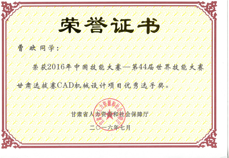 - 上一篇:第44屆世界技能大賽甘肅選拔賽焊接項(xiàng)目優(yōu)秀獎(jiǎng)[ 06-21 ]