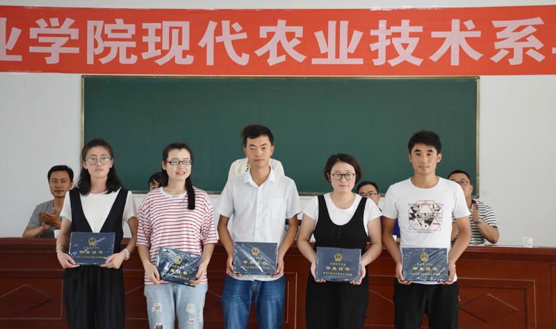 現(xiàn)代農(nóng)業(yè)技術(shù)系黨總支書記晏素珍同志宣讀了現(xiàn)代農(nóng)業(yè)技術(shù)系2017屆畢業(yè)生名單及優(yōu)秀畢業(yè)生名單,并頒發(fā)了畢業(yè)證書和榮譽(yù)證書。本次畢業(yè)典禮同時(shí)還表彰了部分優(yōu)秀學(xué)生,各位老師為優(yōu)秀學(xué)生頒發(fā)了榮譽(yù)證書。