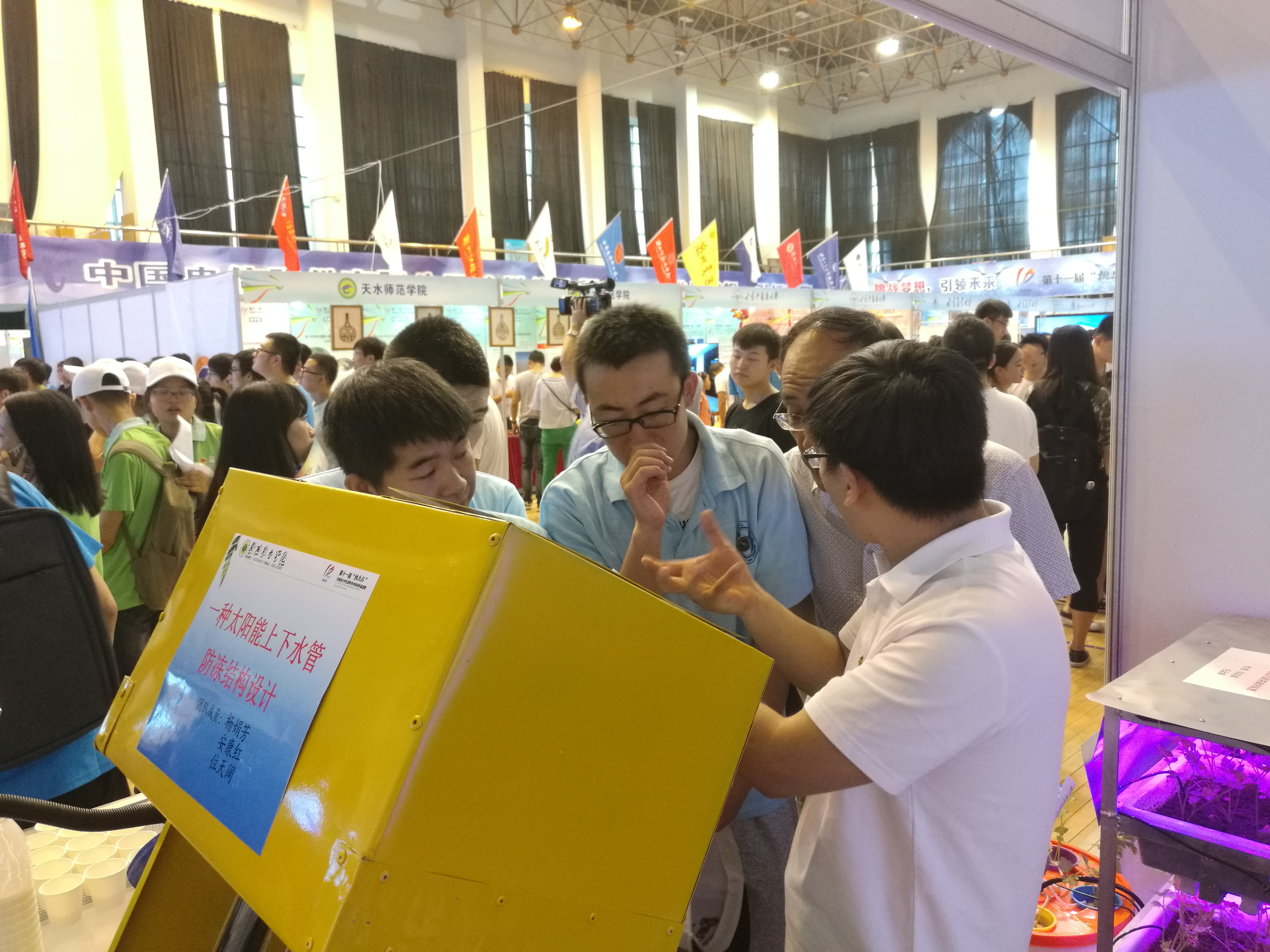 決賽期間,副院長田迎春作為嘉賓出席了終審決賽開幕式,并親臨展演現(xiàn)場指導(dǎo),鼓勵(lì)同學(xué)們?nèi)〉煤贸煽?。在公開展示、現(xiàn)場路演、終審答辯等環(huán)節(jié),我院代表隊(duì)表現(xiàn)出色,給評(píng)審專家和前來觀摩的各高校師生留下了深刻的印象。最終經(jīng)過評(píng)審委員會(huì)終審評(píng)審,機(jī)械制造系選送的作品《一種太陽能上下水管防凍結(jié)構(gòu)設(shè)計(jì)》榮獲一等獎(jiǎng),新能源學(xué)院選送的《牧區(qū)用太陽能酸奶機(jī)》、現(xiàn)代農(nóng)業(yè)技術(shù)系選送的《一種城市家庭蔬菜栽培裝置》、電子信息工程系選送的《對(duì)武威市涼州區(qū)農(nóng)村網(wǎng)絡(luò)普及情況的調(diào)查報(bào)告》3件作品榮獲二等獎(jiǎng),能源工程系選送的《基于labview開發(fā)環(huán)境的太陽能日輻射計(jì)算軟件的設(shè)計(jì)與應(yīng)用》、建筑工程系選送的《一種建筑工地臨時(shí)設(shè)施中使用的交替式桌椅》、現(xiàn)代農(nóng)業(yè)技術(shù)系選送的《溫室滴灌系統(tǒng)模型設(shè)計(jì)》、藥學(xué)系選送的《甘肅省金塔縣野生藥用植物資源區(qū)系分析》、護(hù)理系選送的《高職院校護(hù)理學(xué)生職業(yè)道德教育調(diào)查研究》5件作品榮獲三等獎(jiǎng)。