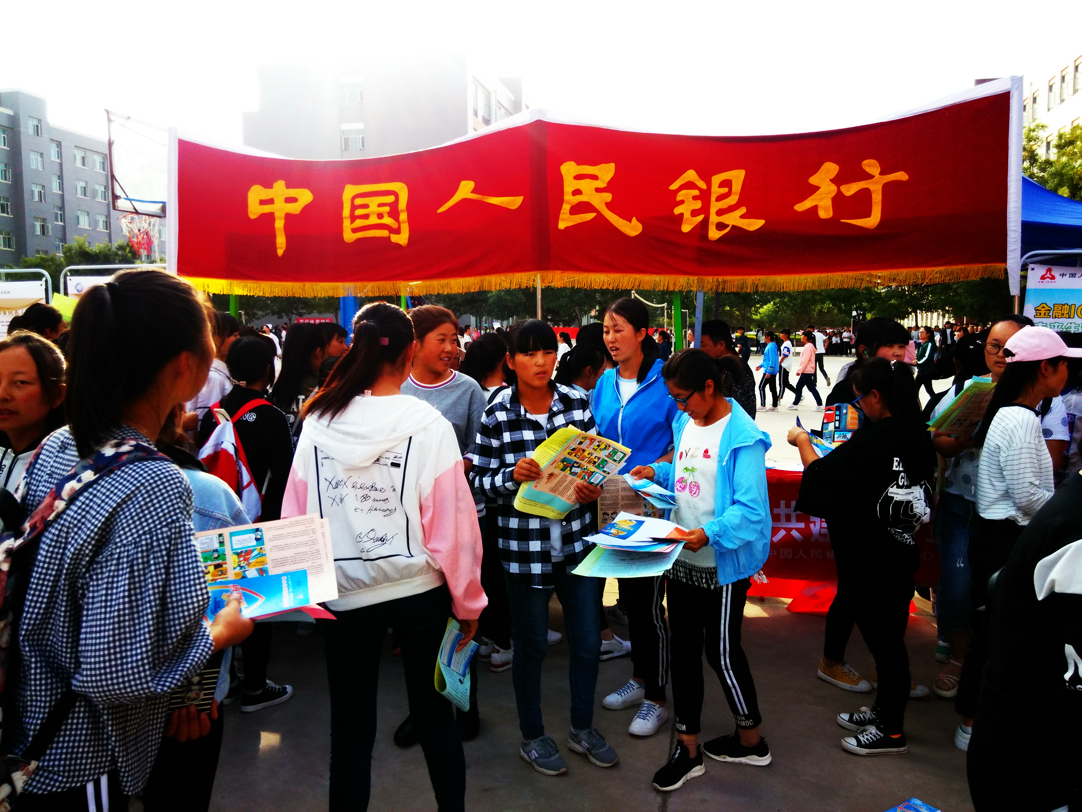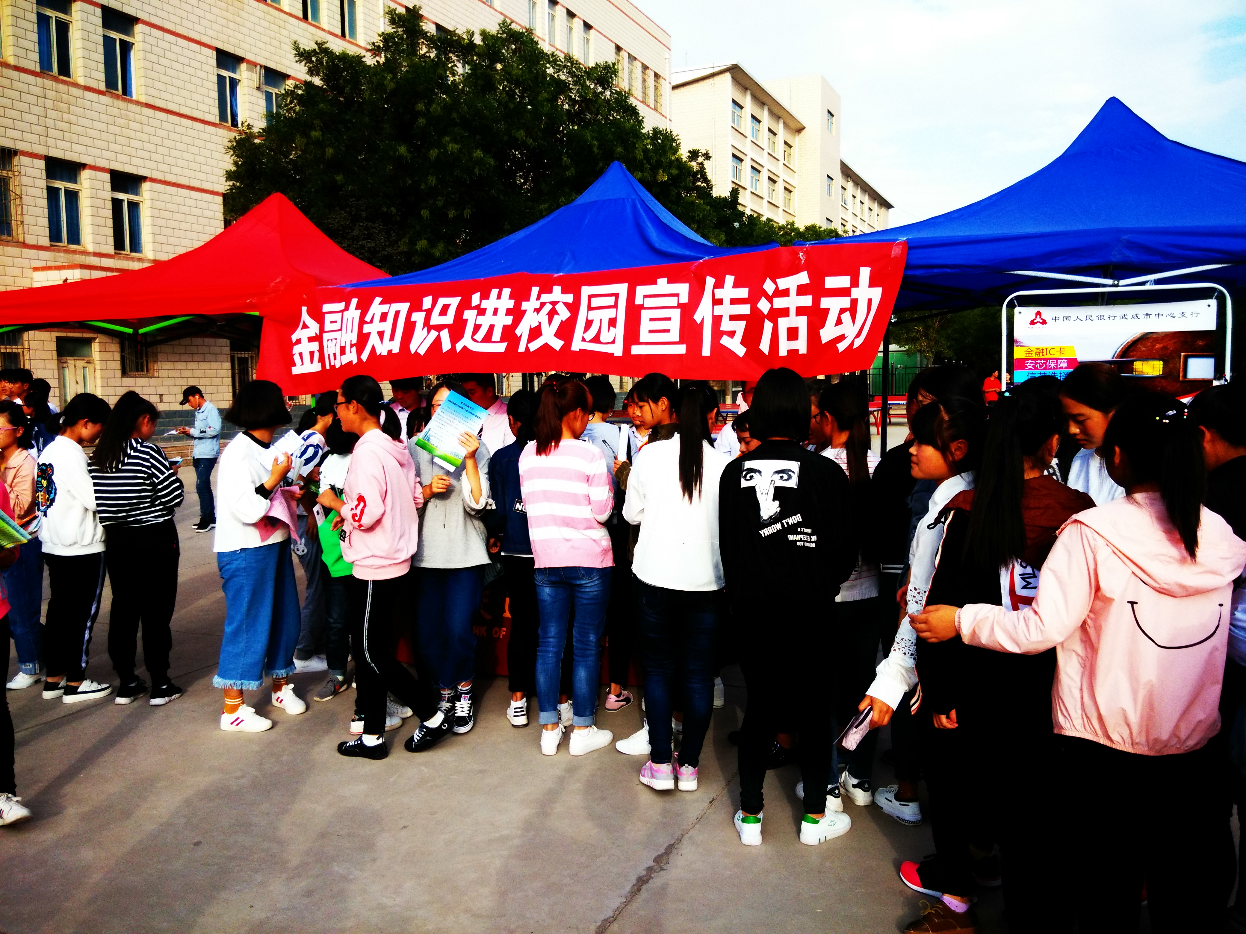 ???? 為幫助和引導(dǎo)大學(xué)生群體牢固樹立金融安全意識(shí),9月21日下午,學(xué)生工作處邀請(qǐng)中國(guó)人民銀行武威分行、武威農(nóng)商銀行、交通銀行武威分行在學(xué)院尚德樓南操場(chǎng)開展了“送金融知識(shí)進(jìn)校園”宣傳活動(dòng),全院學(xué)生積極響應(yīng)號(hào)召,有1000余人參加了此次活動(dòng)。