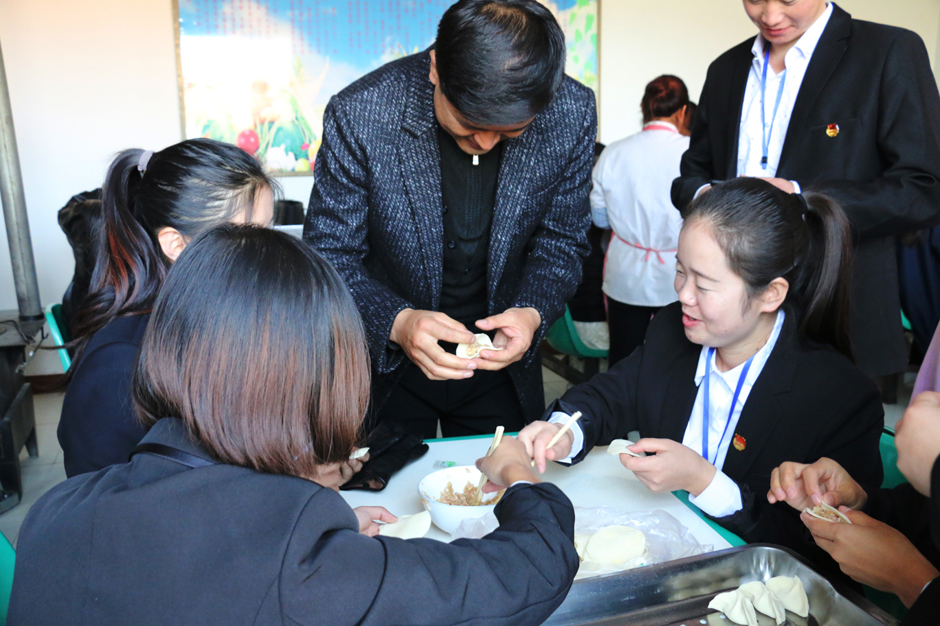 上午八點半,醫(yī)學技術(shù)學院各位黨員、入黨積極分子、團學干部、師生代表在廚房為老人包餃子,并整理被褥;康復治療專業(yè)教師黨員高萬飛為老人講解“如何健康養(yǎng)生”;系團總支為老人們送上毛巾、牙膏、香皂等日常生活用品;愛牙協(xié)會的志愿者為老人,進行牙齒檢查,講解如何愛護牙齒;中醫(yī)養(yǎng)生協(xié)會的志愿者為老人們測血壓,演示常用的按摩方法。中午時分,老人們吃著熱氣騰騰的餃子,看著全系師生代表為老人們準備的精彩節(jié)目,臉上洋溢著幸福的笑容。