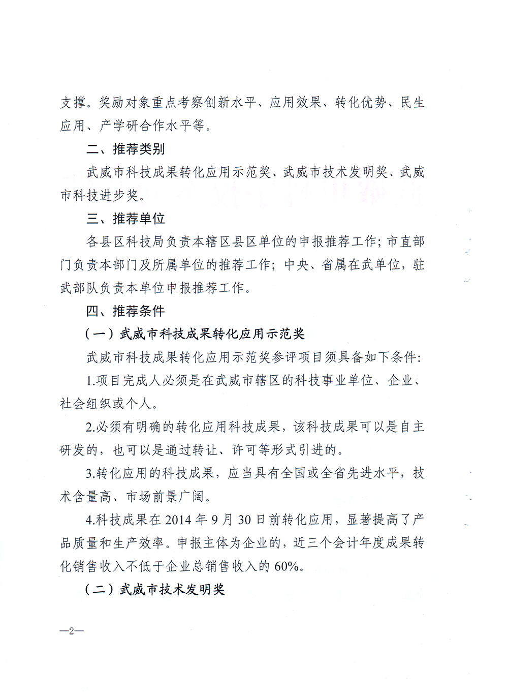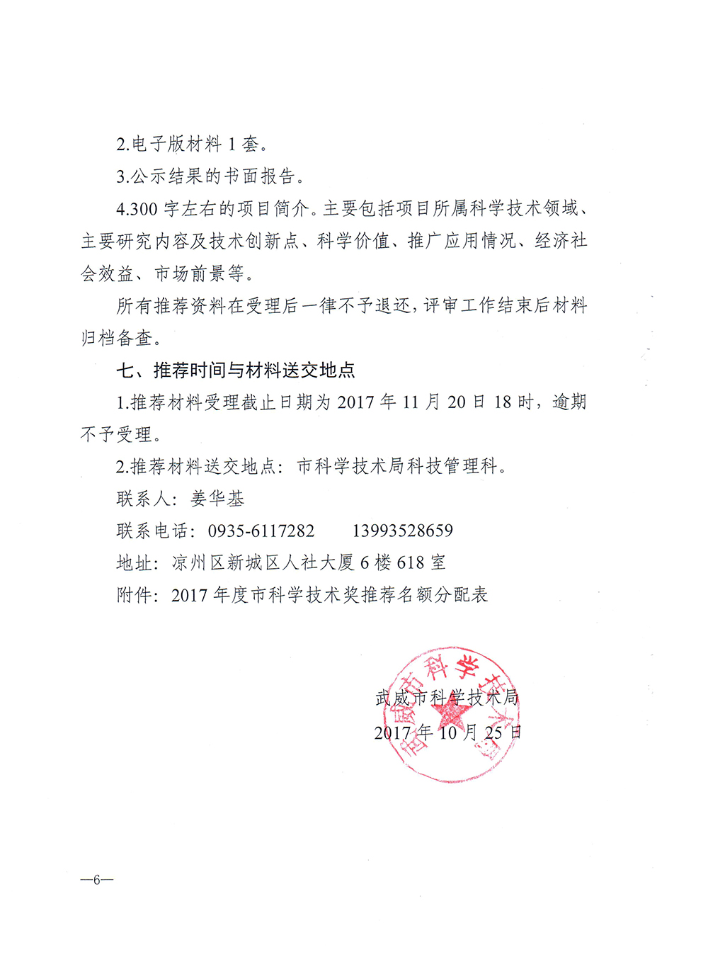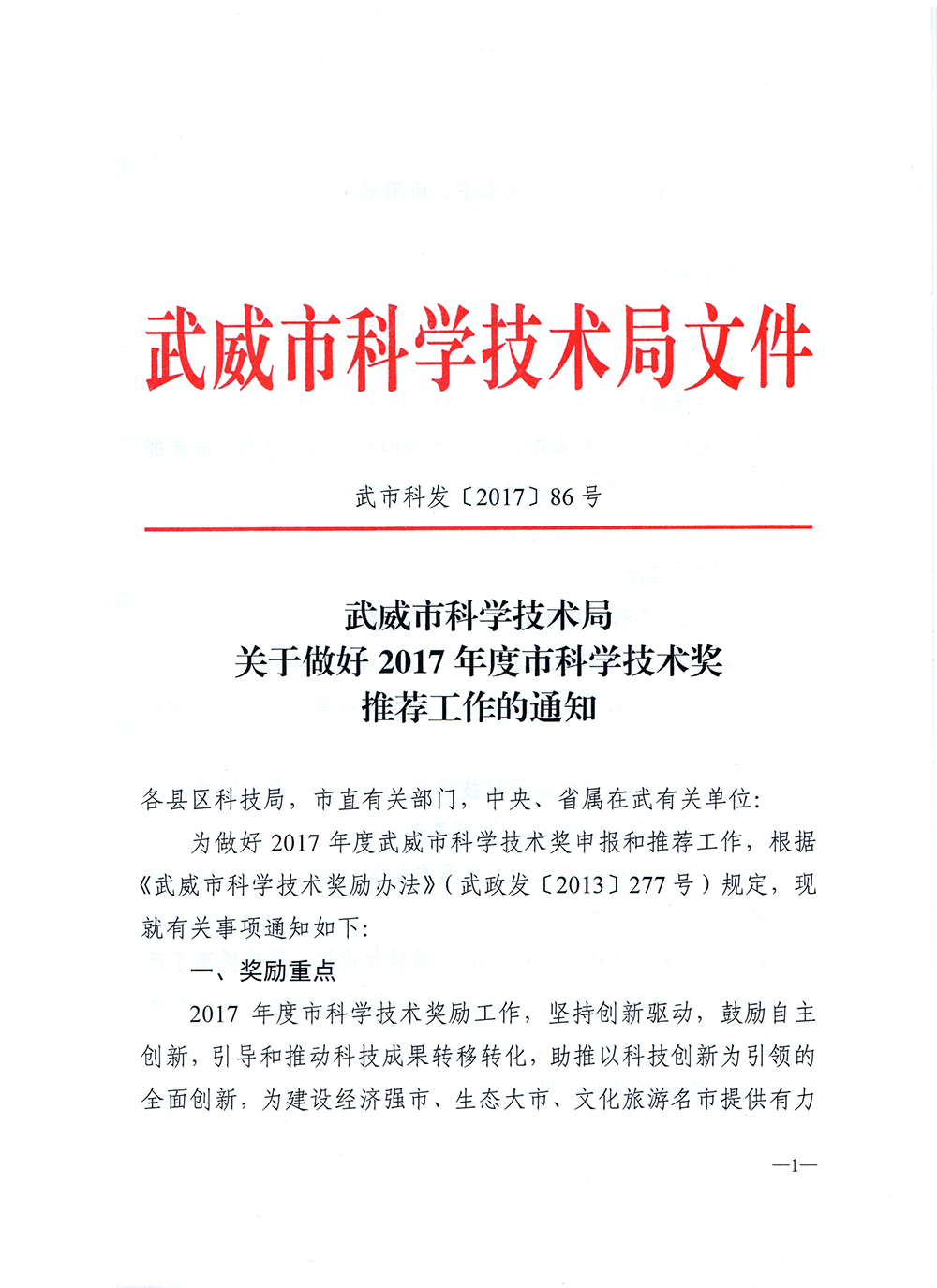 - 下一篇:關(guān)于做好2017年度武威市科學(xué)技術(shù)獎推薦工作的通知[ 11-02 ]