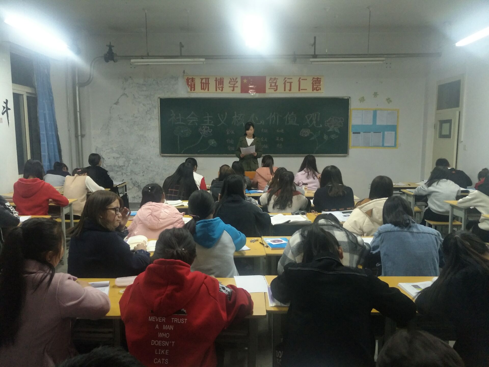 ?根據(jù)藥學(xué)系對社會主義核心價值觀主題宣傳教育創(chuàng)建工作的安排,11月6日,利用晚自習(xí),17級藥學(xué)5班召開主題班會,深入學(xué)習(xí)宣傳社會主義核心價值觀的概念內(nèi)涵、發(fā)展歷程、價值意義、基本原則、踐行路徑、實踐活動和“24字人知人曉”等內(nèi)容。同時,將“24字內(nèi)容”在教室、宿舍張貼宣傳,做到社會主義核心價值觀進教室、進宿舍、進頭腦。通過學(xué)習(xí),對“24字人知人曉”工程做到了班級全覆蓋,班級學(xué)生對社會主義核心價值觀內(nèi)涵的認識和理解進一步加深。今后,將根據(jù)系上安排,不斷將培育和踐行社會主義核心價值觀工作引向深入。